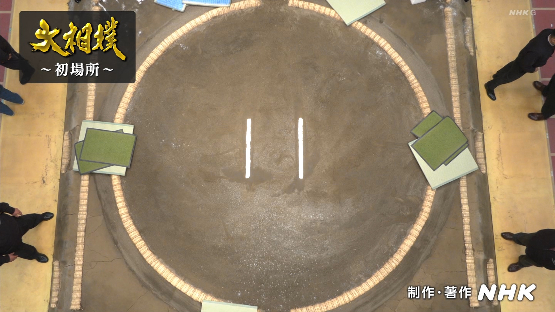 【解説】正面 浅香山親方〔元大関 魁皇関〕、向正面 立浪親方〔元小結 旭豊関〕