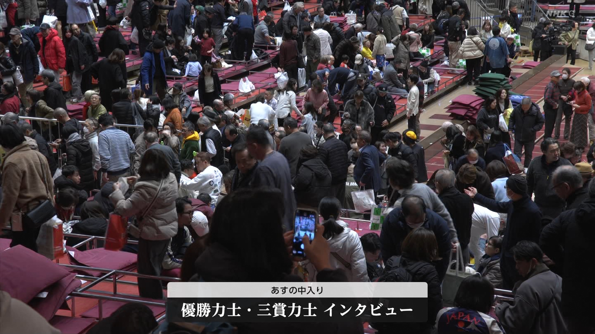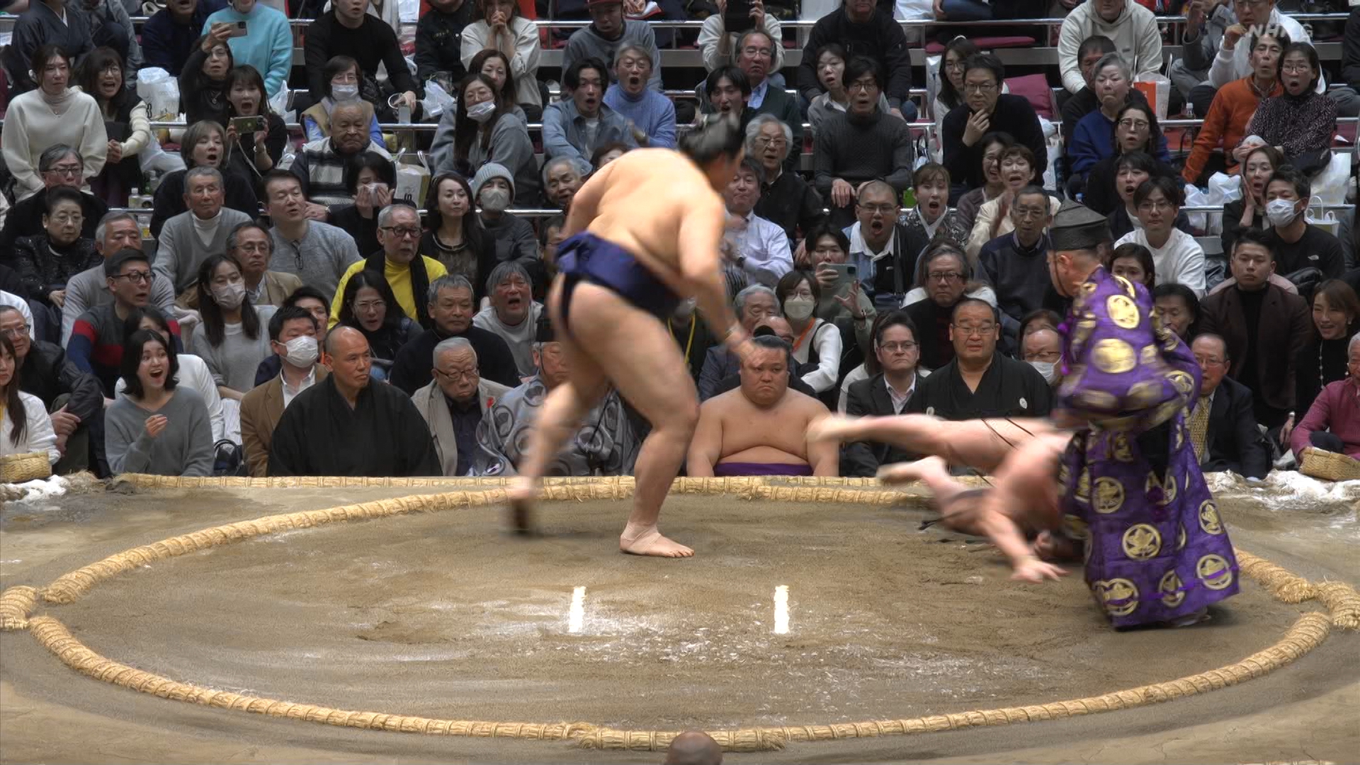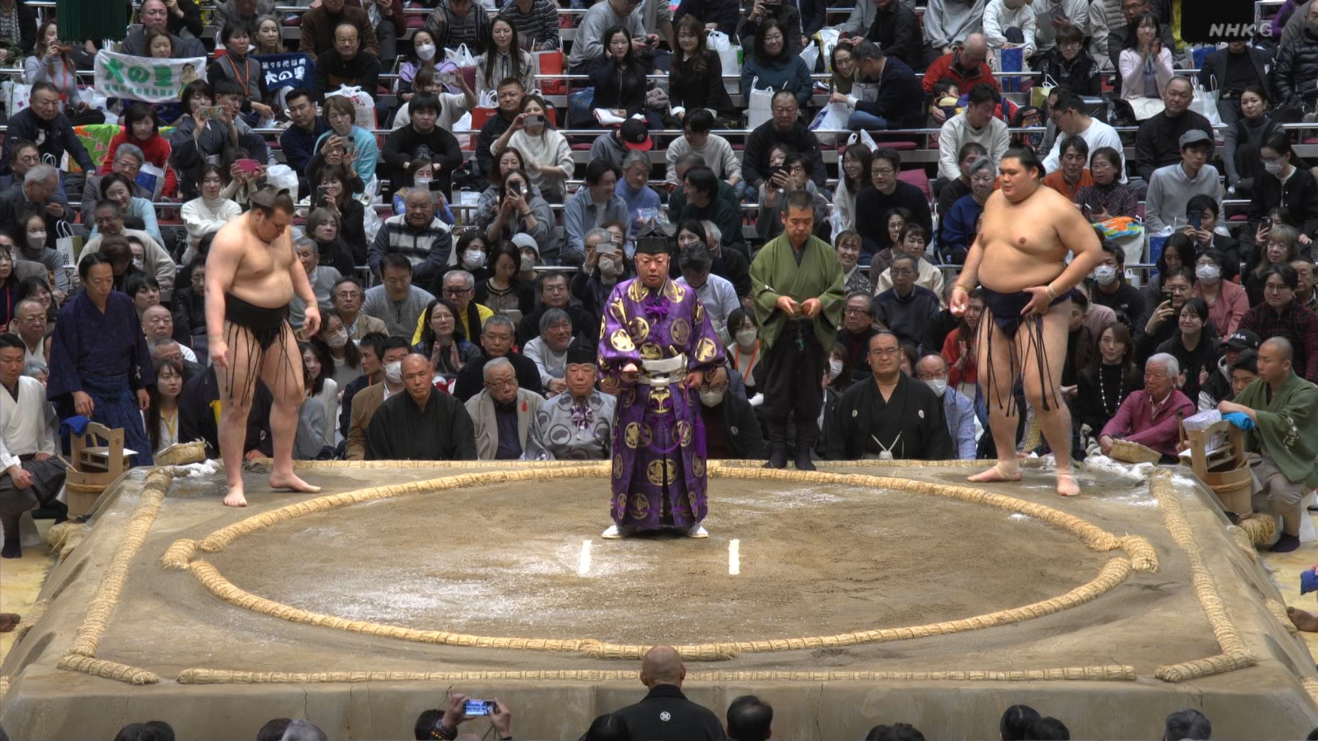【解説】正面 春日野親方〔元関脇 栃乃和歌関〕、向正面 荒磯親方〔元関脇 琴勇輝関〕