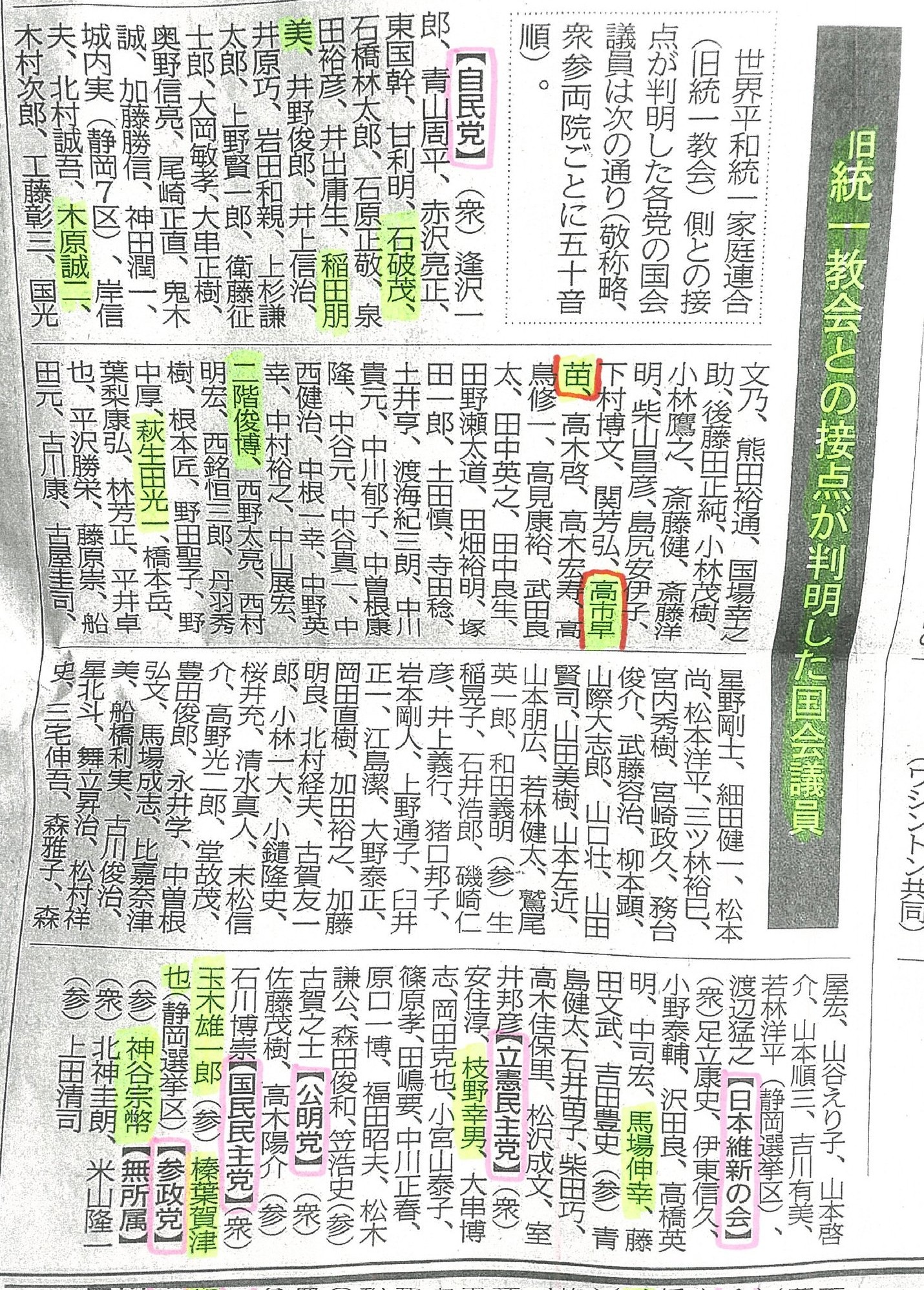 「我々と近い議員たちの動向」「我々に近いキーパーソンで今回当選した国会議員たち」