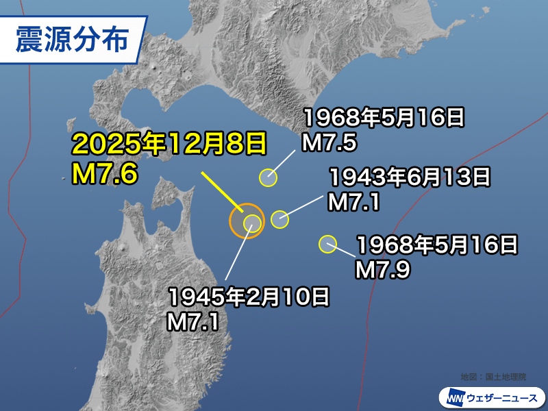 青森県東方沖でM7.5の地震