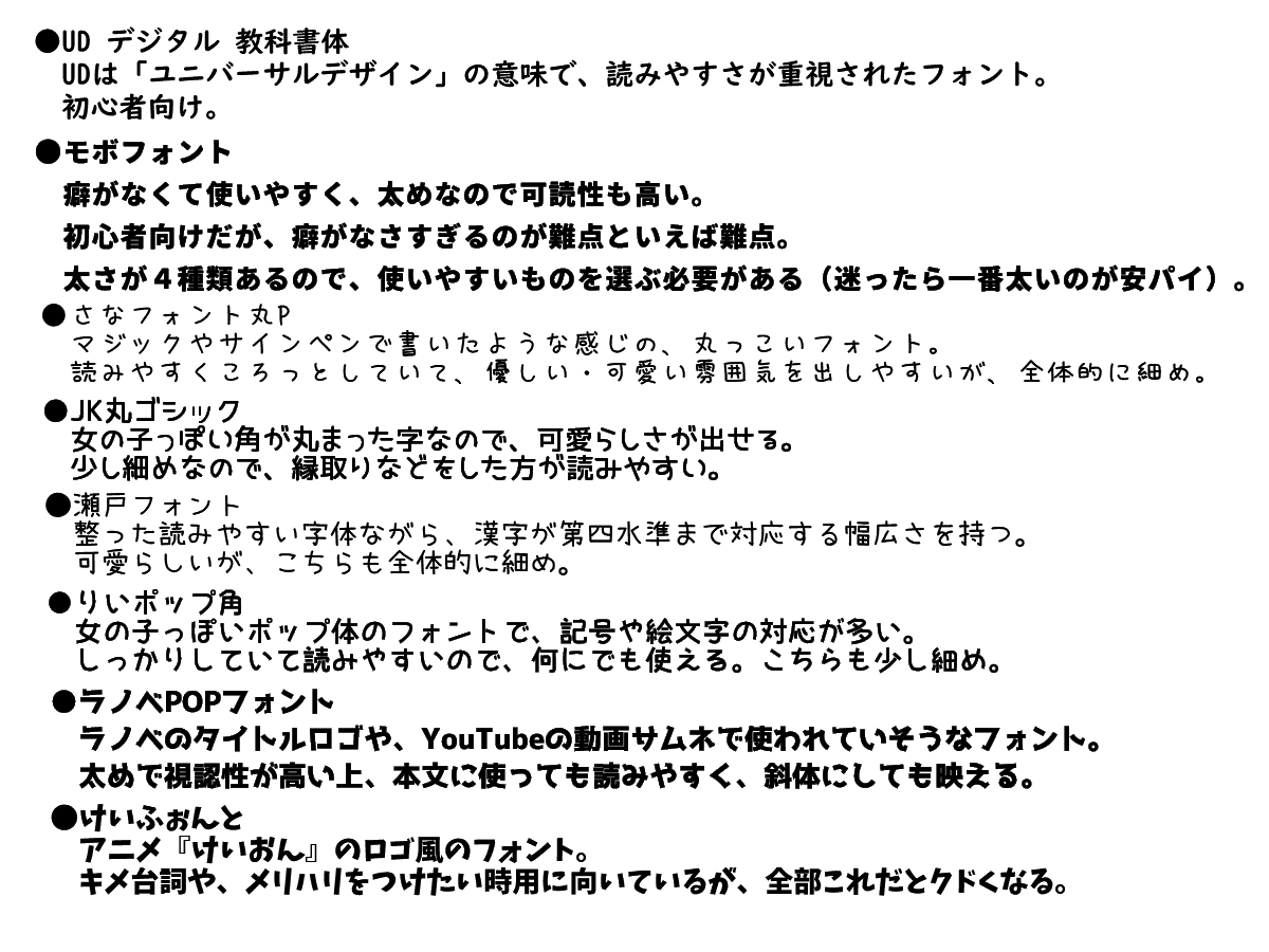 | … | 1無題Nameとしあき 26/03/14(土)19:31:33No.18196452+ 1773484293788.png-(89443 B) 画像はこれまでお勧めされたフォント一覧 |