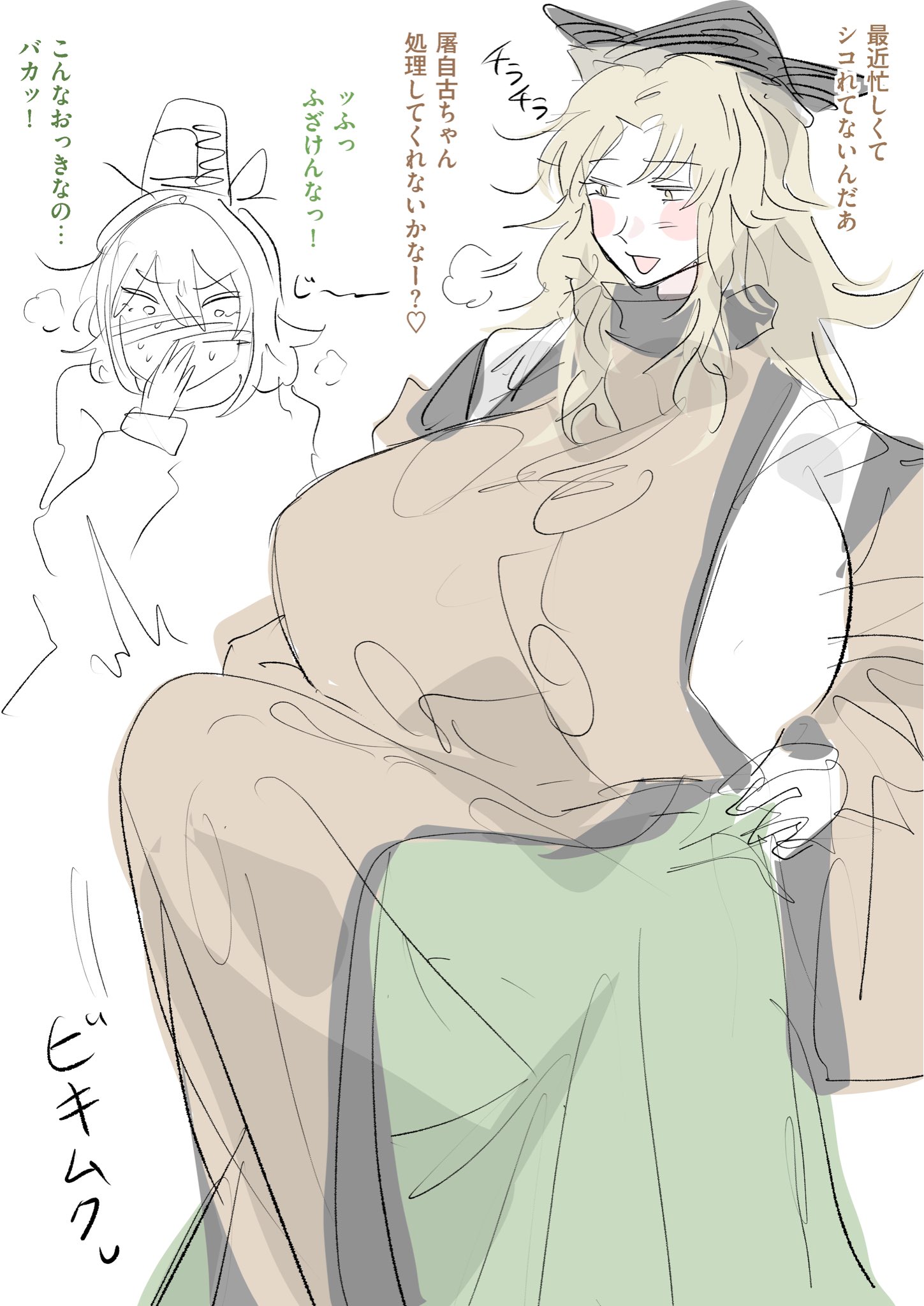| … | 21無題Nameとしあき 26/03/24(火)21:09:04No.18208671そうだねx3神子に挿入する妄想で1400年シコり続けてたのにいざできるとなったら緊張しすぎて全く勃起できなくて泣きだしてしまったさきちゃを見かねて幻想郷でも屈指のクソデカチンポをさきまんにブチ込んで前立腺潰して強制勃起させてあげる屠自古姐さんください |