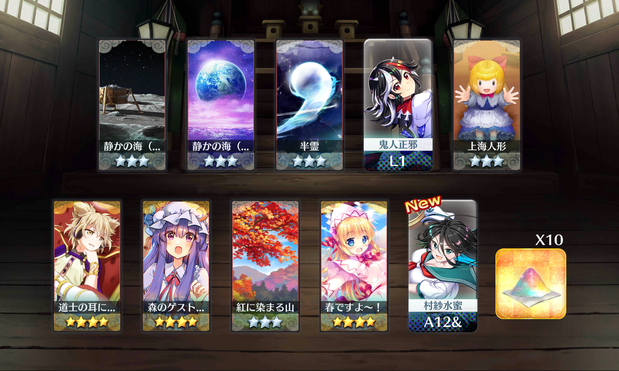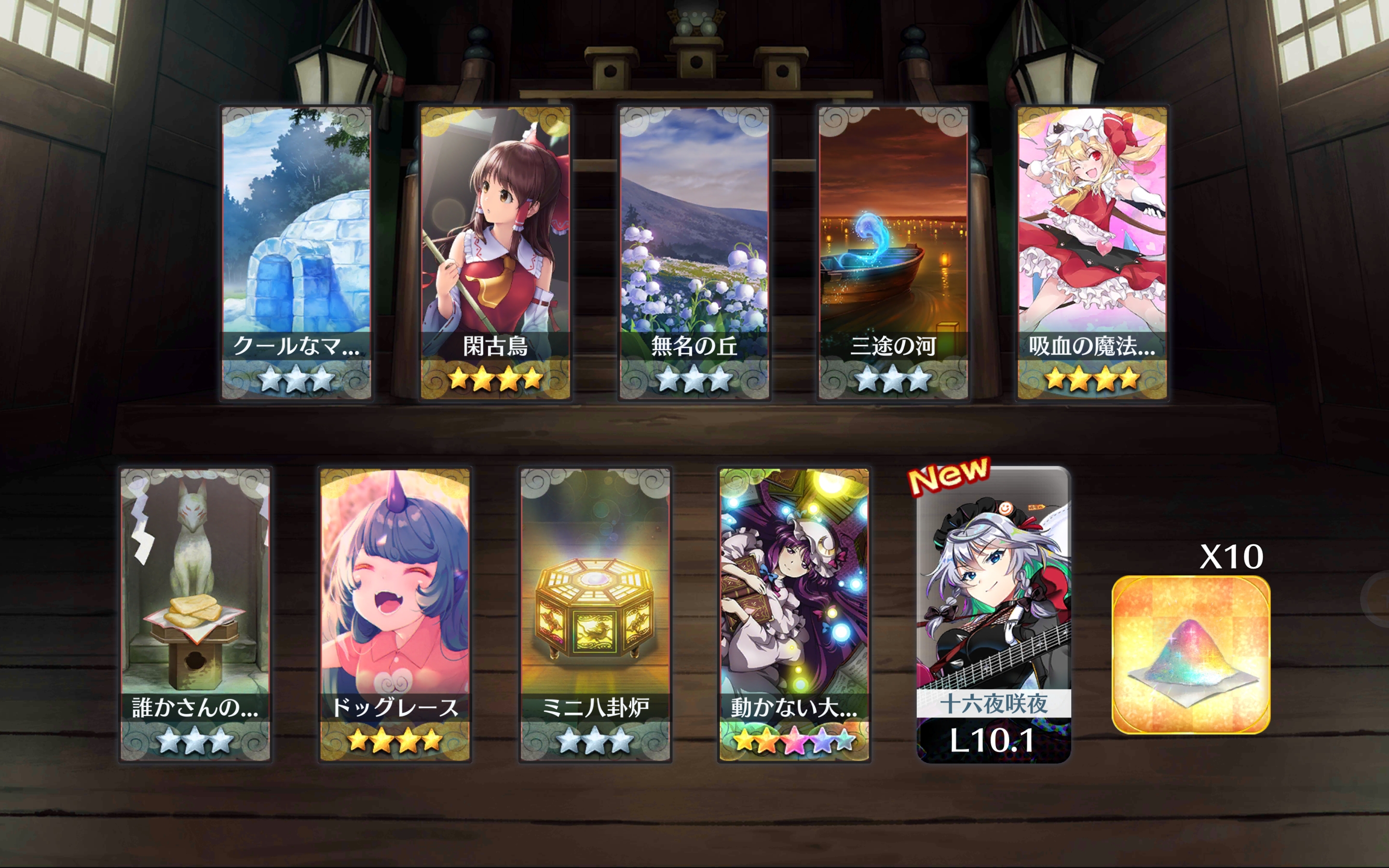 | … | 53無題Nameとしあき 26/01/11(日)03:03:57 ID:i0FBryRENo.18112628+ 1768068237830.png-(3025180 B) 全部は引けないしレリック以外形代足りないから除災招福引いたら姫様来てくれた |