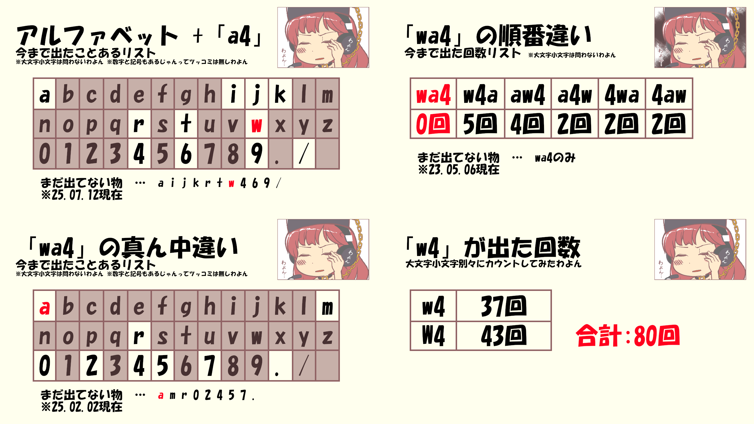 | … | 4無題Nameとしあき 26/02/02(月)07:36:40 ID:EFU1jpNUNo.18143475+ 1769985400083.png-(564091 B) 「アルファベット+a4」「wa4の真ん中違い」 |
