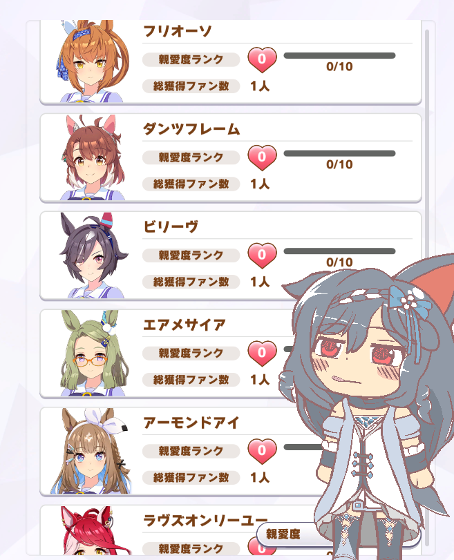 | … | 18無題Nameとしあき 26/02/26(木)21:35:56No.18176251そうだねx1 1772109356135.png-(293796 B) アプデ初日の火曜は新シナリオの勉強に費やして昨日アイちゃんを育てました… |