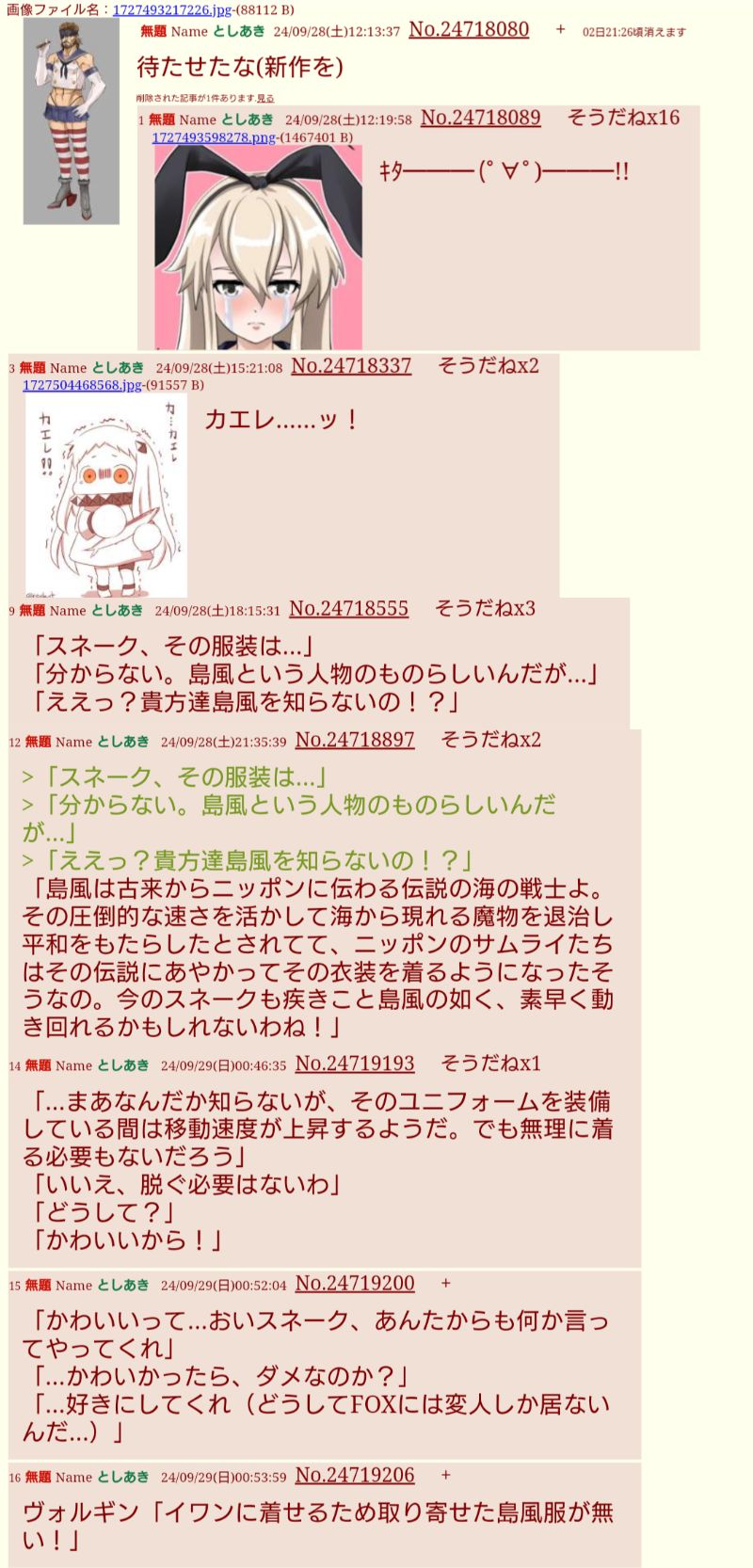 | … | 16無題Nameとしあき 26/02/24(火)12:02:24No.25476665+香椎「艦これ初の男の娘とかゼッタイありませんからね?!」 |