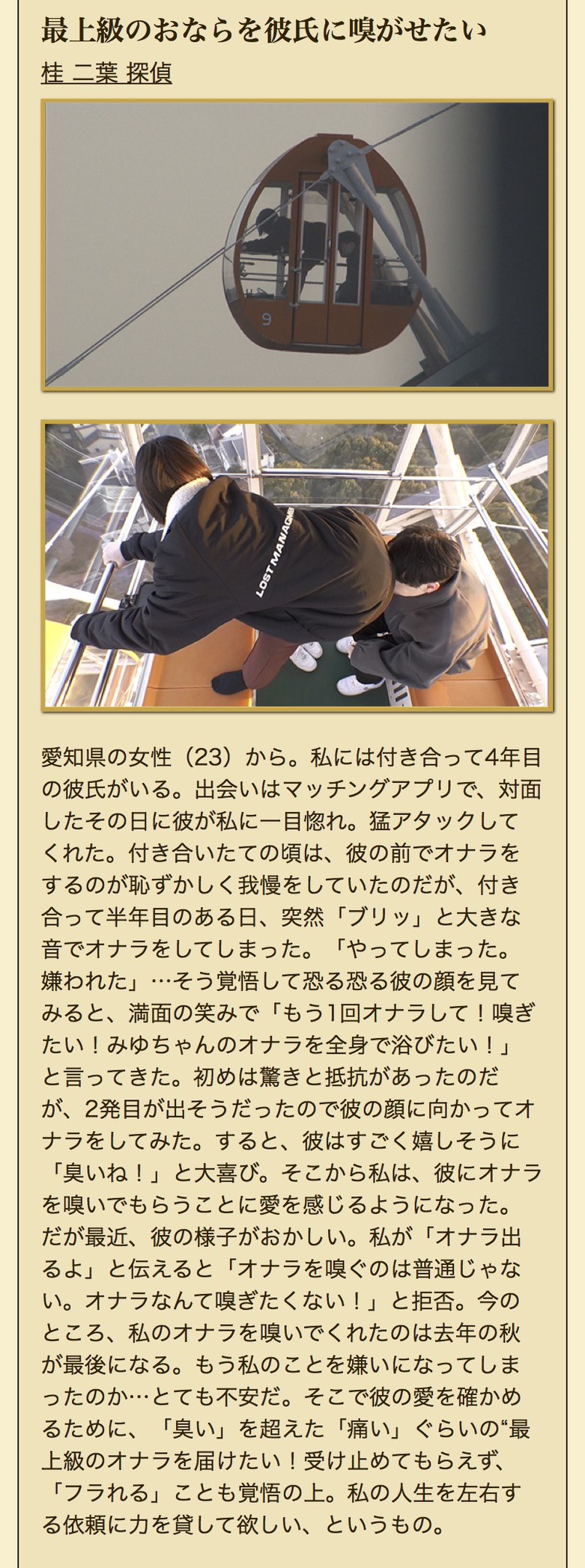 | … | 925無題Nameとしあき 26/02/26(木)19:35:16No.25478937+>探偵ナイトスクープで特殊性癖デース…… |