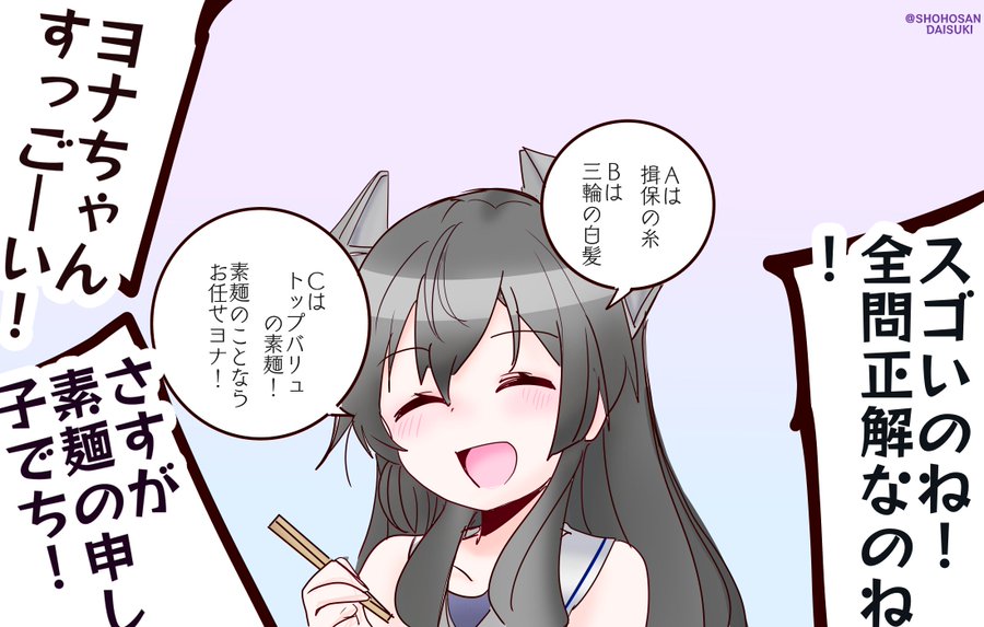 | … | 39無題Nameとしあき 26/02/28(土)18:58:25No.25481566+ 1772272705164.png-(1427570 B) 鎮守府では◯鯨にソーメンばかり喰わされるヨナ |