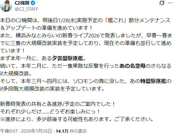 | … | 4無題Nameとしあき 26/03/07(土)21:41:53No.25489948+ 1772887313127.png-(98894 B) 今月実装予定のメンテで夕雲型改二が新たに来ると |