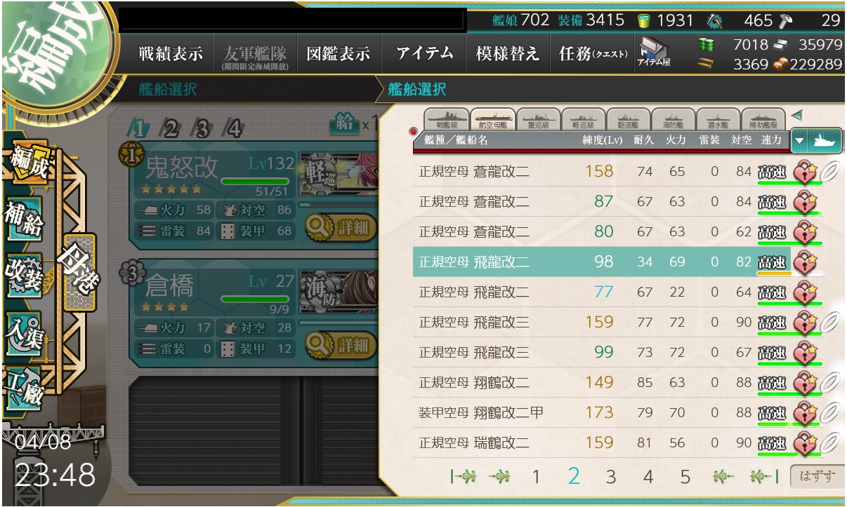 | … | 74無題Nameとしあき 26/04/09(木)09:34:42No.25527995+>その代わり飛龍改三(開発資材220)で |
