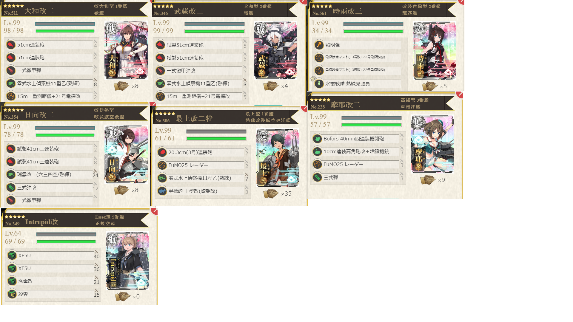 | … | 53無題Nameとしあき 26/04/12(日)22:06:56No.25532669+(続き)初めて泊地修理を実施。大和を小破状態まで修復 |