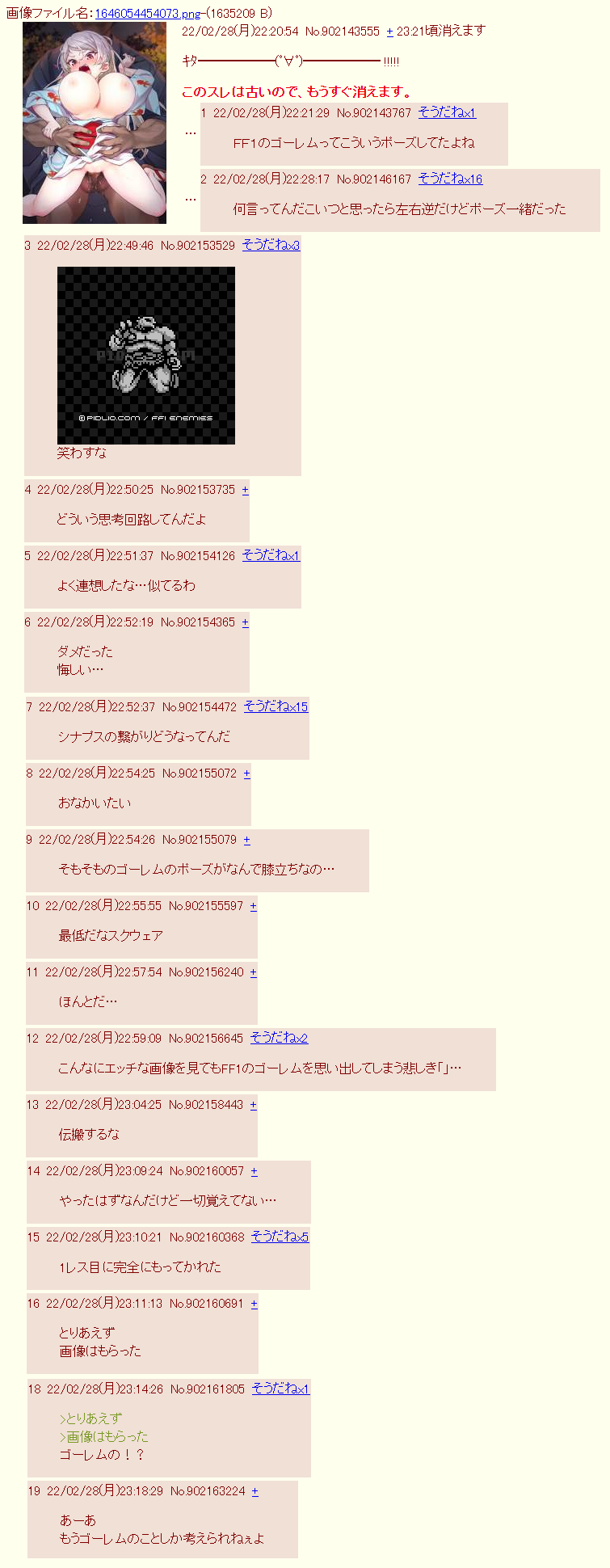 | … | 22無題Nameとしあき 26/04/12(日)21:19:33No.25532592+だからハッスルしきった棒をおさめる鞘がほしいんだ |