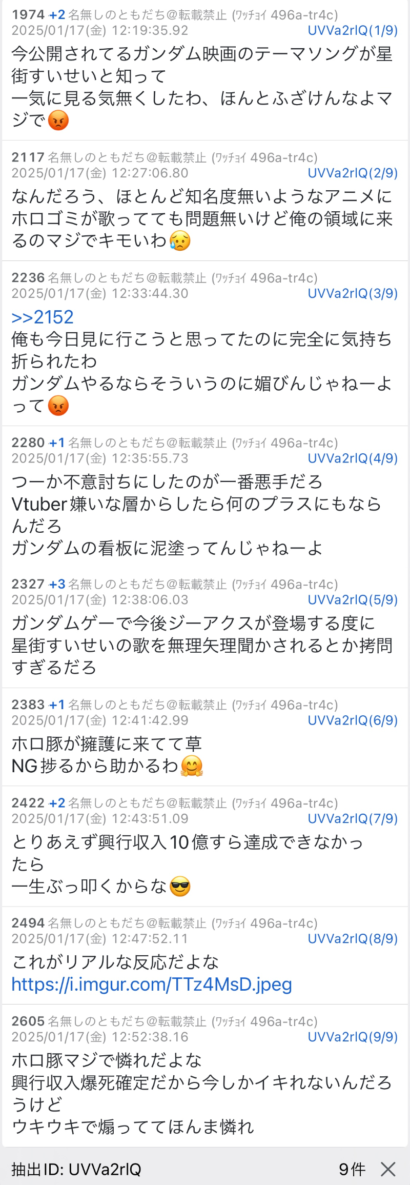 | … | 1993無題Name名無し 26/02/16(月)18:34:48No.1948371そうだねx8 1771234488169.png-(1220998 B) >そもそもガンダムの時どれだけ先陣切って荒らしまくったかあそこまでデカイとこが詳細に調べてないとでも思ってんのかよ |