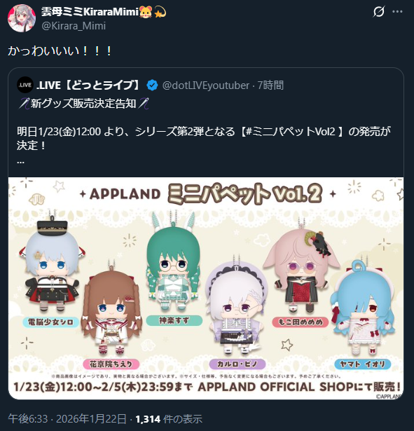 | … | 2無題Name名無し 25/12/16(火)20:43:43No.1927077そうだねx3当社所属タレントへの誹謗中傷に関する声明 |