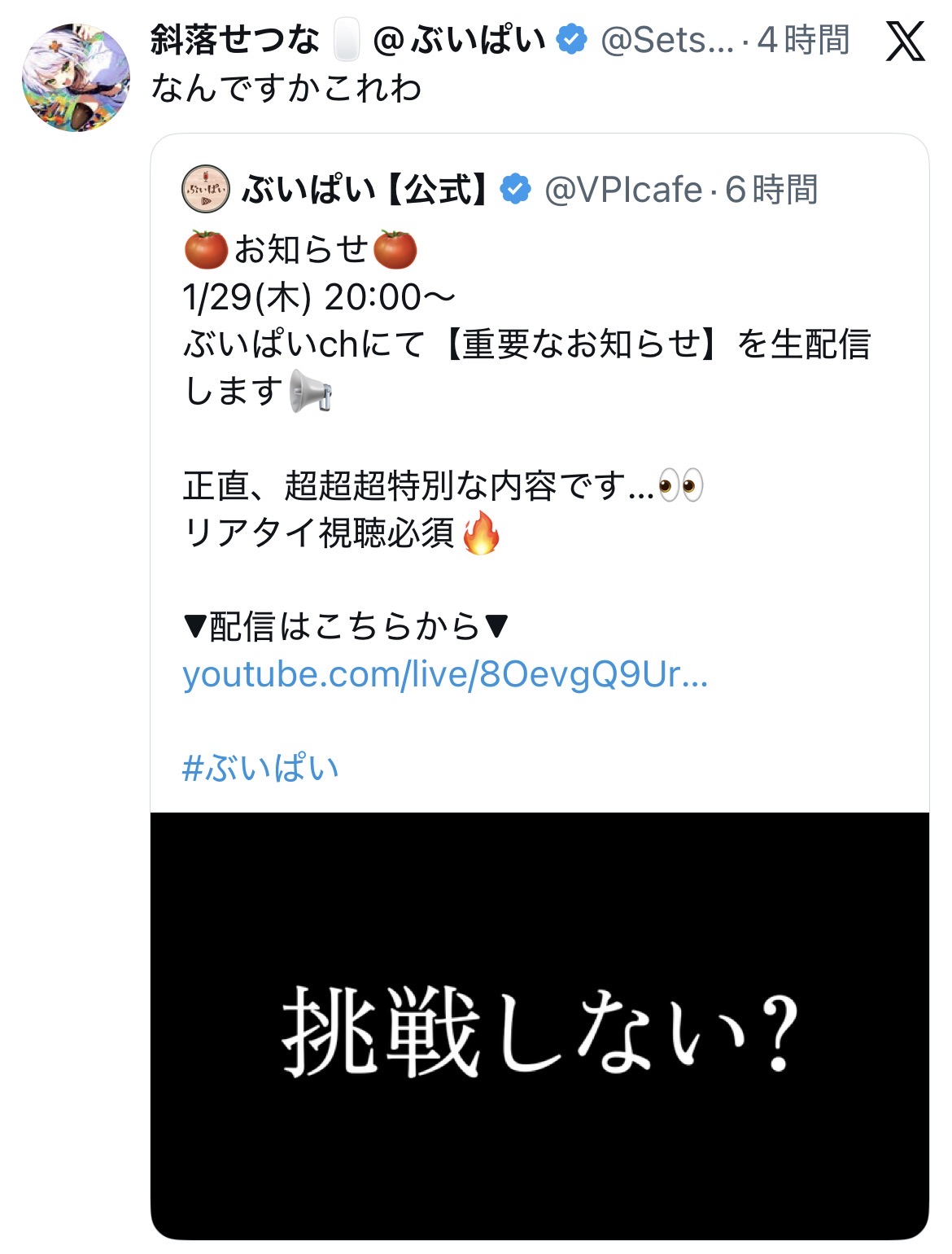 | … | 624無題Name名無し 26/02/05(木)17:15:15No.1943308+同時視聴の本編映像付きの切り抜きがあってオイオイそれはまずいだろと思ったら公式だった |