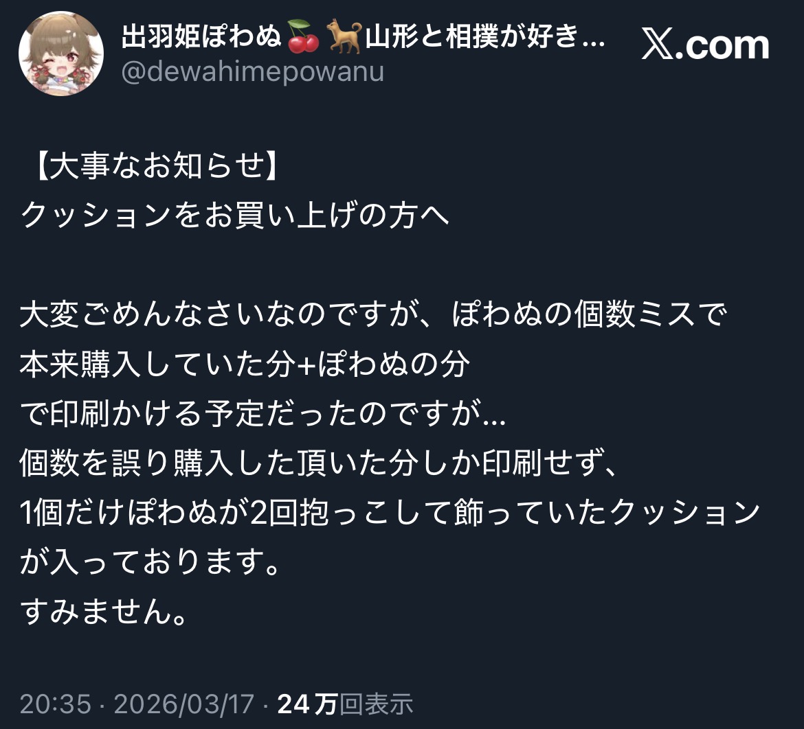 | … | 24無題Name名無し 26/03/19(木)00:23:05No.1958641+個人勢ならではのミスでダメだった |