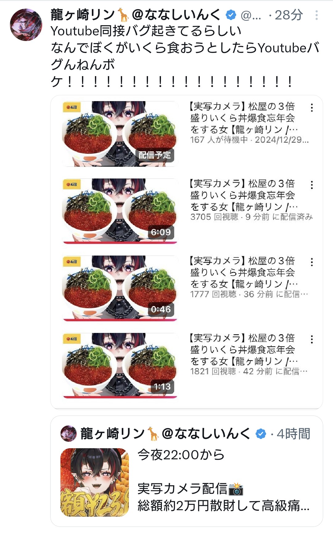 | … | 141無題Name名無し 26/04/19(日)10:34:43 IP:61.21.*(home.ne.jp)No.1964990+レア枠のユリ嬢朝配信だ |