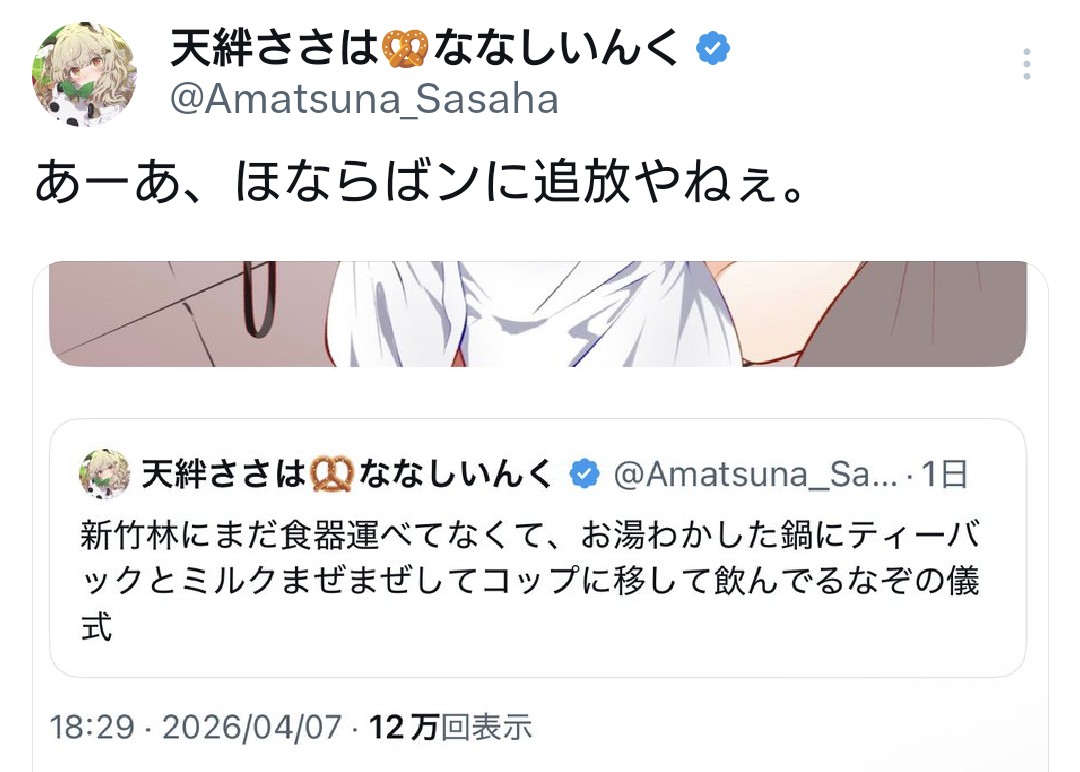 | … | 93無題Name名無し 26/04/10(金)12:18:39 IP:153.246.*(ocn.ne.jp)No.1963491そうだねx9 1775791119789.jpg-(1935682 B) 推し宙歌枠リレーにポポち参加 |