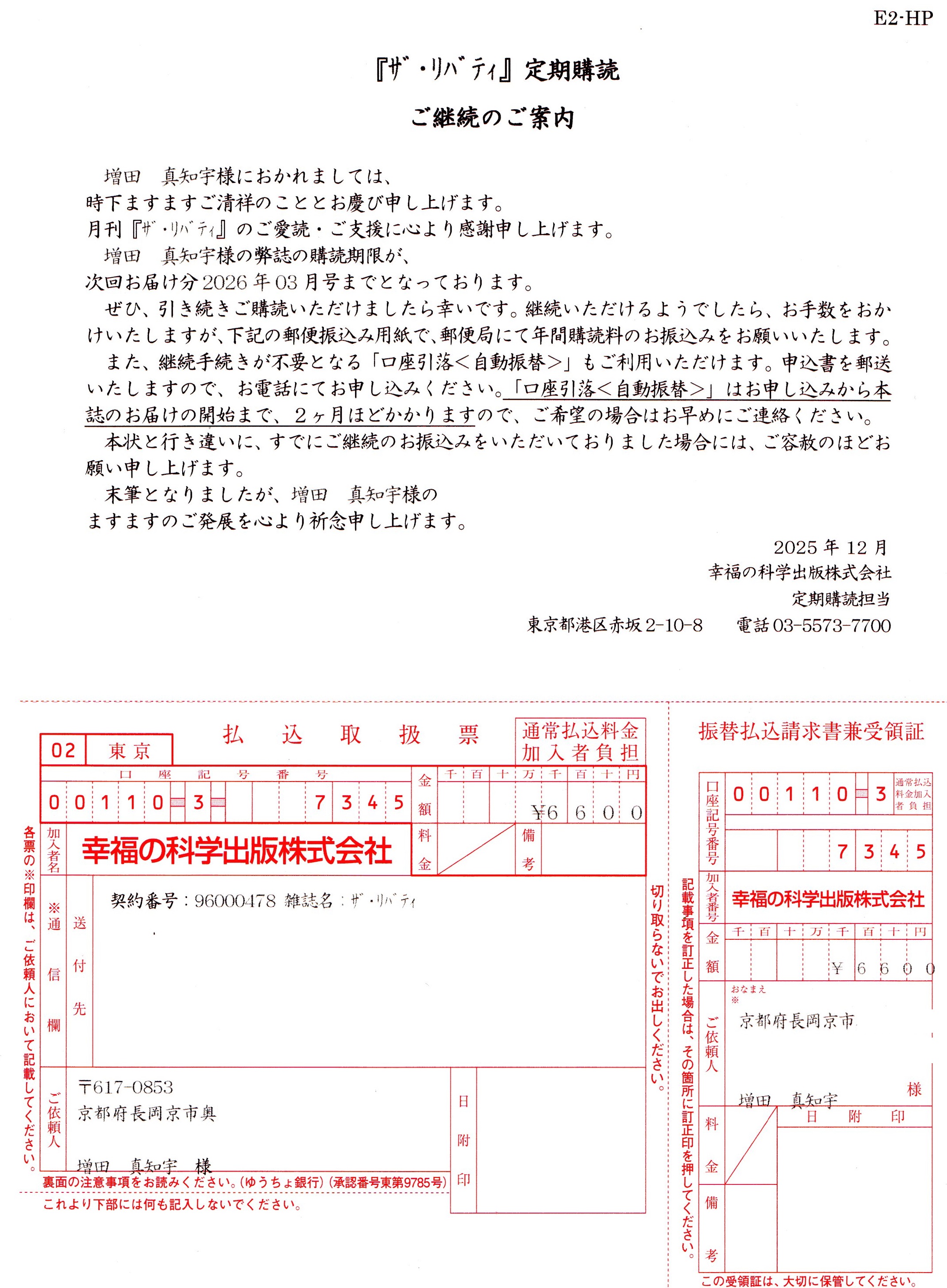| … | 70政経紙 月刊ザ・リバティ購読継続案内Name名無し 26/02/14(土)18:10:20No.10936+ 1771060220941.jpg-(1253032 B) 政経紙 月刊ザ・リバティ購読継続案内が同封されて来た。 |