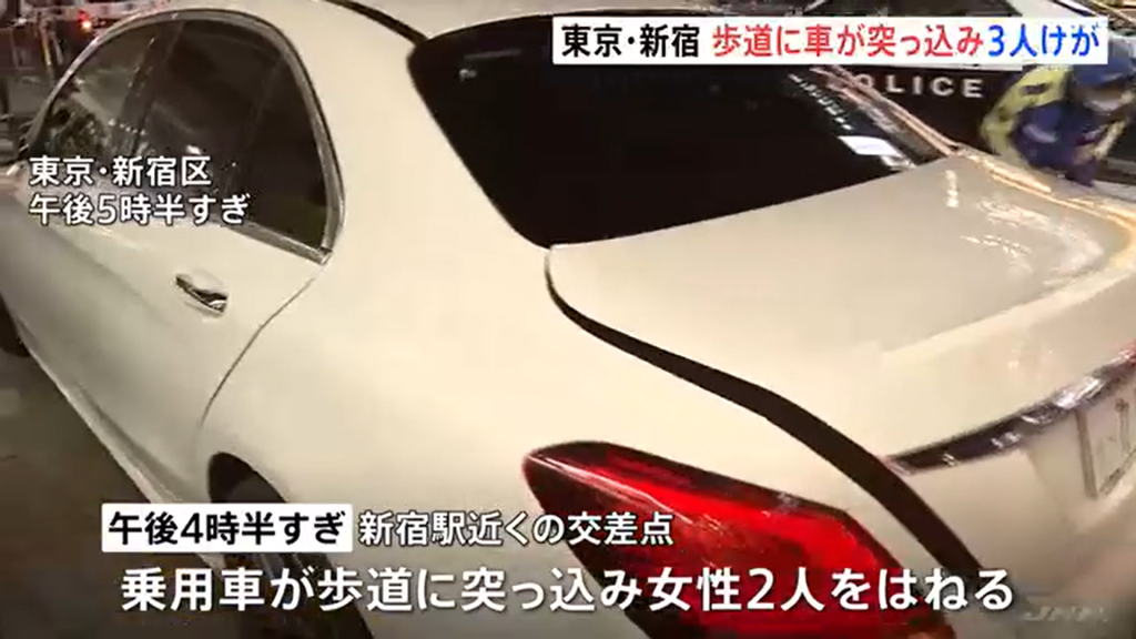 【速報】乗用車が歩道に乗り上げ、歩いていた人を次々とはねたか 東京・新宿駅近く 3人けが