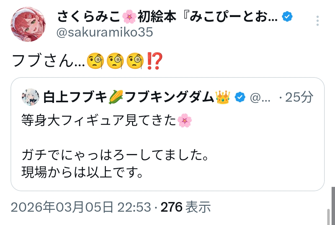 | … | 5無題Name名無し 26/03/03(火)08:13:14No.11614733+ねねちとはお尻仲間だからな |