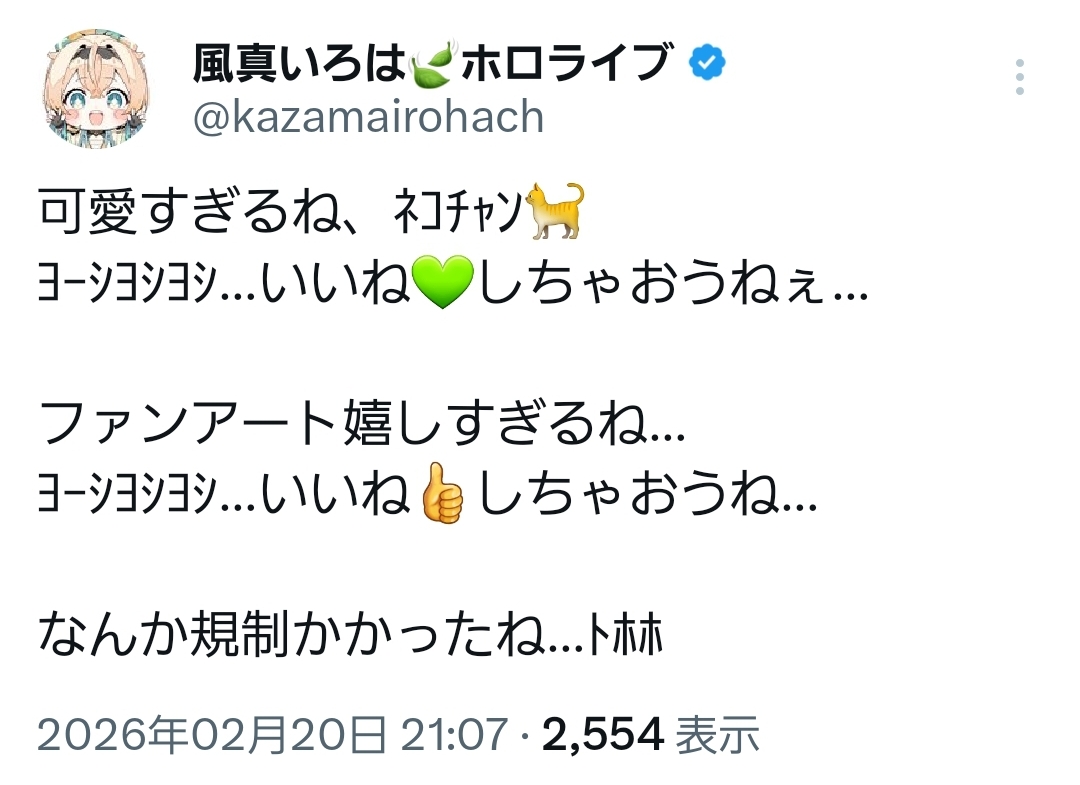 | … | 994無題Name名無し 26/02/21(土)11:05:14 IP:210.251.*(medias.ne.jp)No.11563143+急にライブができなくなったのは2周年だよね |