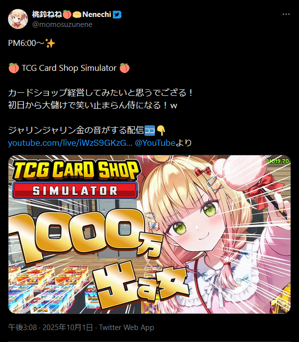 … | 901無題Name名無し 25/10/01(水)18:29:06No.10574964そうだねx1ちゃんとゆっくりカードの開封してるねねちを見てるとすごく新鮮な気持ちになる |