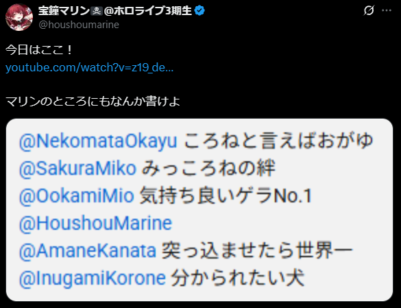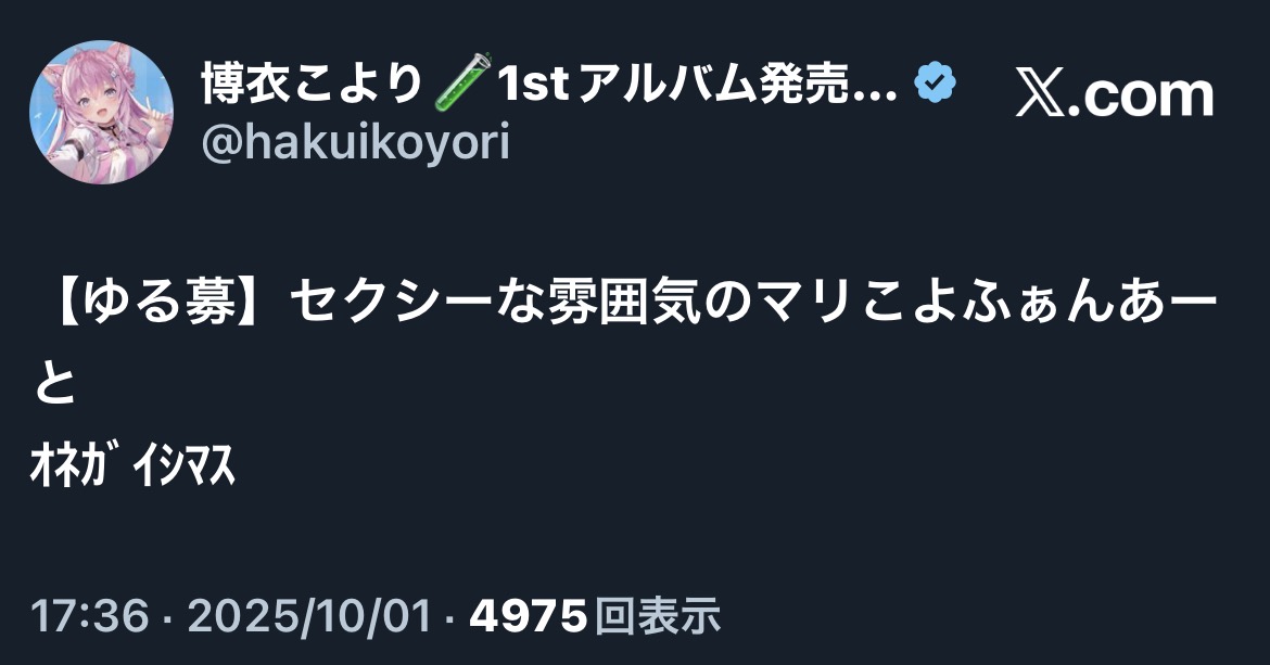 … | 64無題Name名無し 25/10/01(水)00:16:02No.10573835そうだねx1めちゃくちゃクリエイティブな形でファンに還元してくれるホロメンはすげえってずっと思ってる |
