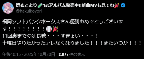 | … | 904無題Name名無し 25/10/30(木)23:33:17No.10785891そうだねx3勝った!息子が勝った! |