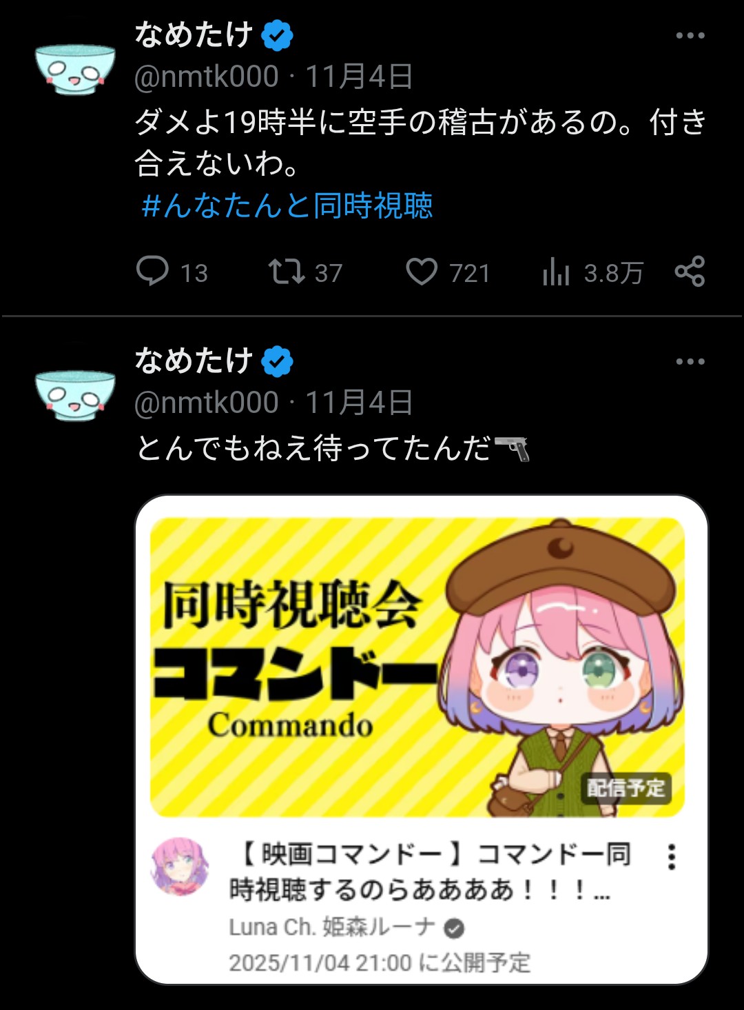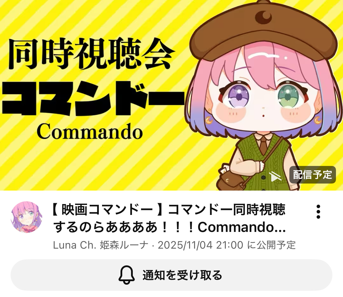 | … | 6無題Name名無し 25/11/03(月)21:38:24No.10821014+まさかのコマンドー実況会場 |
