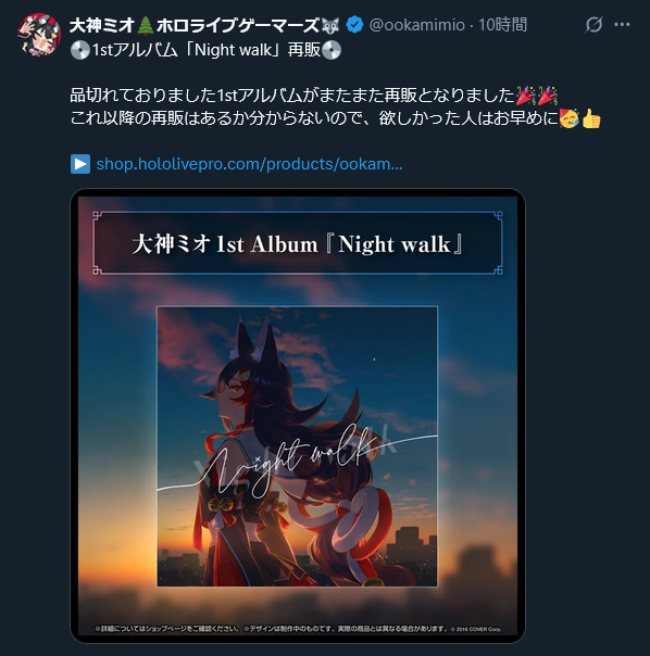 | … | 14無題Name名無し 25/11/07(金)11:11:53No.10835887+アルバムって本来はあまり売れない物なのかねミオしゃ本人も売り切れたこと驚いてたよね |