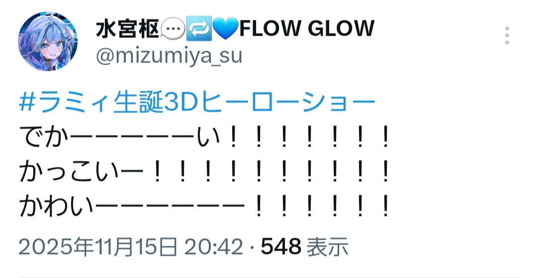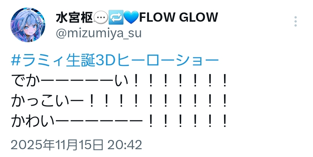 | … | 948無題Name名無し 25/11/15(土)20:46:57No.10892782そうだねx1このライブが最後のヒーローライブとは思えない |