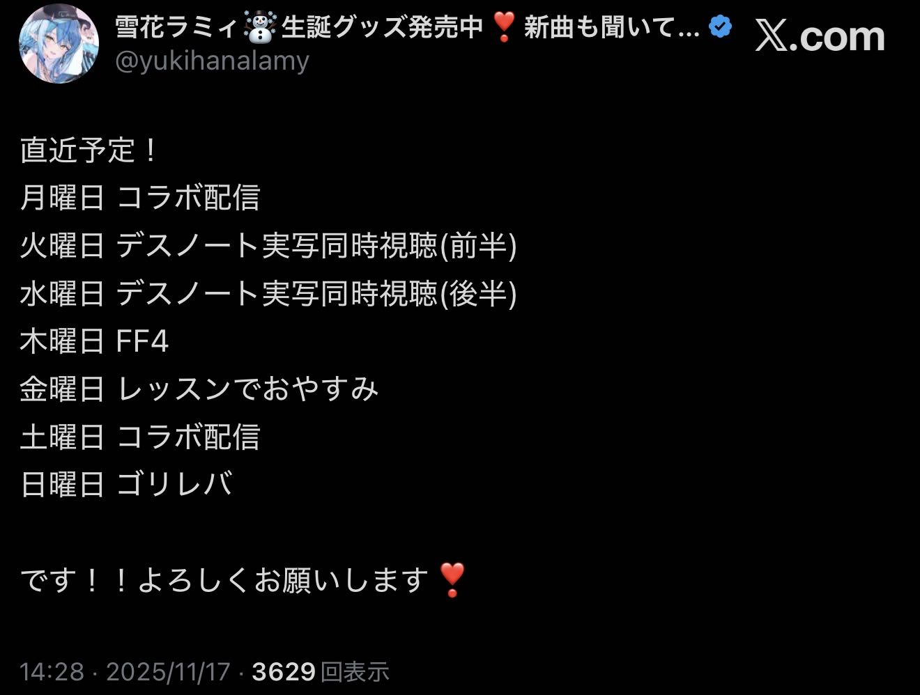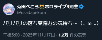 | … | 18無題Name名無し 25/11/17(月)01:03:12No.10910280そうだねx6今日もそらちゃんがかわいかった |
