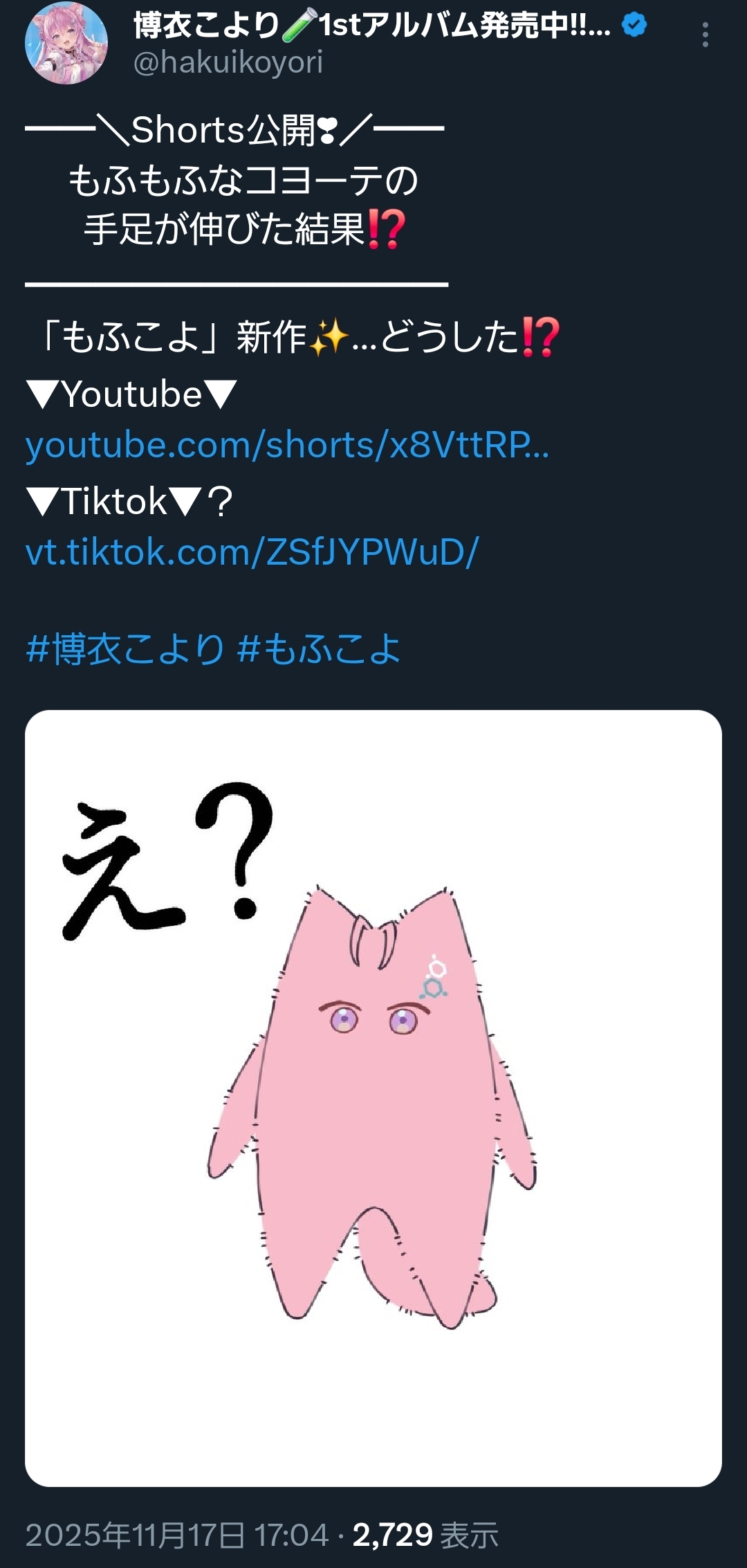 | … | 932無題Name名無し 25/11/17(月)19:13:20No.10911385+大きくなったモココ |