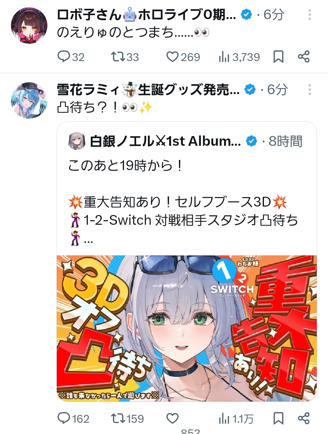 | … | 945無題Name名無し 25/11/17(月)19:13:27No.10911399+19時からエッチすぎる配信になってきた |