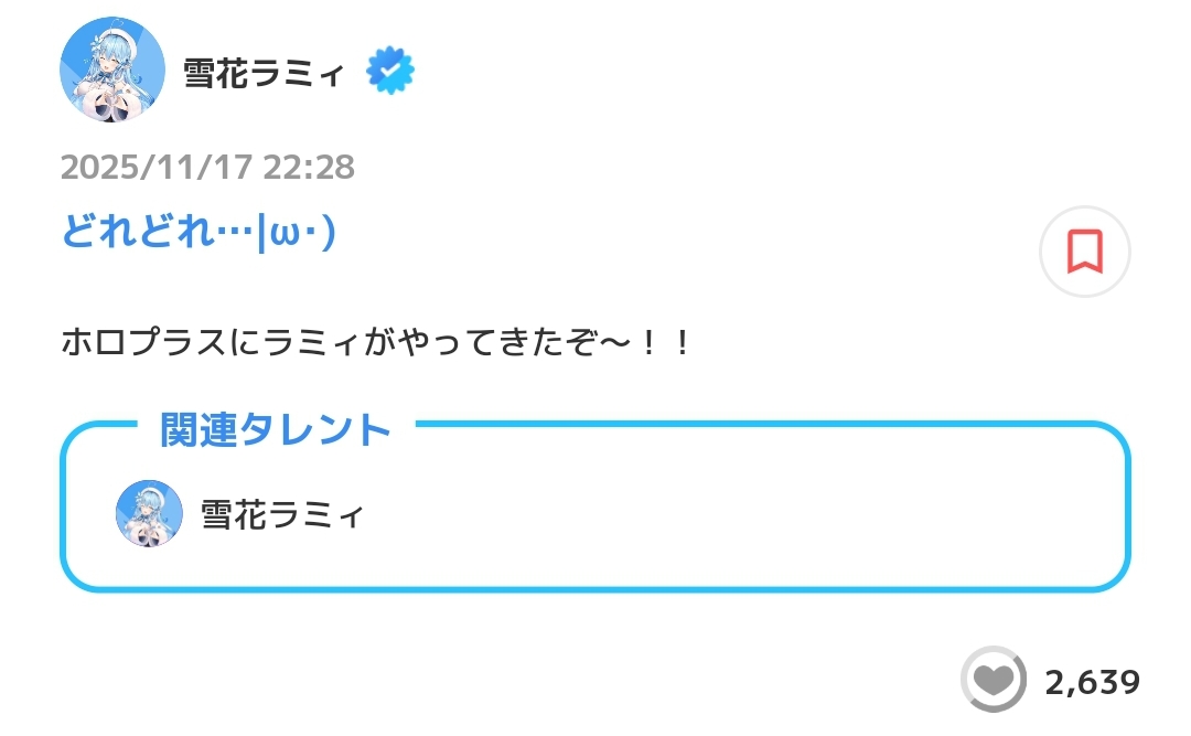 | … | 55無題Name名無し 25/11/17(月)21:26:46No.10913556そうだねx2>フブミオはあんまりドッタバッタしなさそう |
