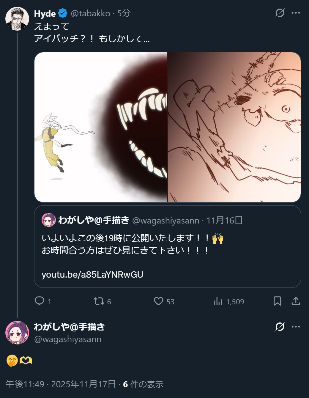 | … | 8無題Name名無し 25/11/17(月)21:23:14No.10913508+よぴ…泣いて良いんやで |