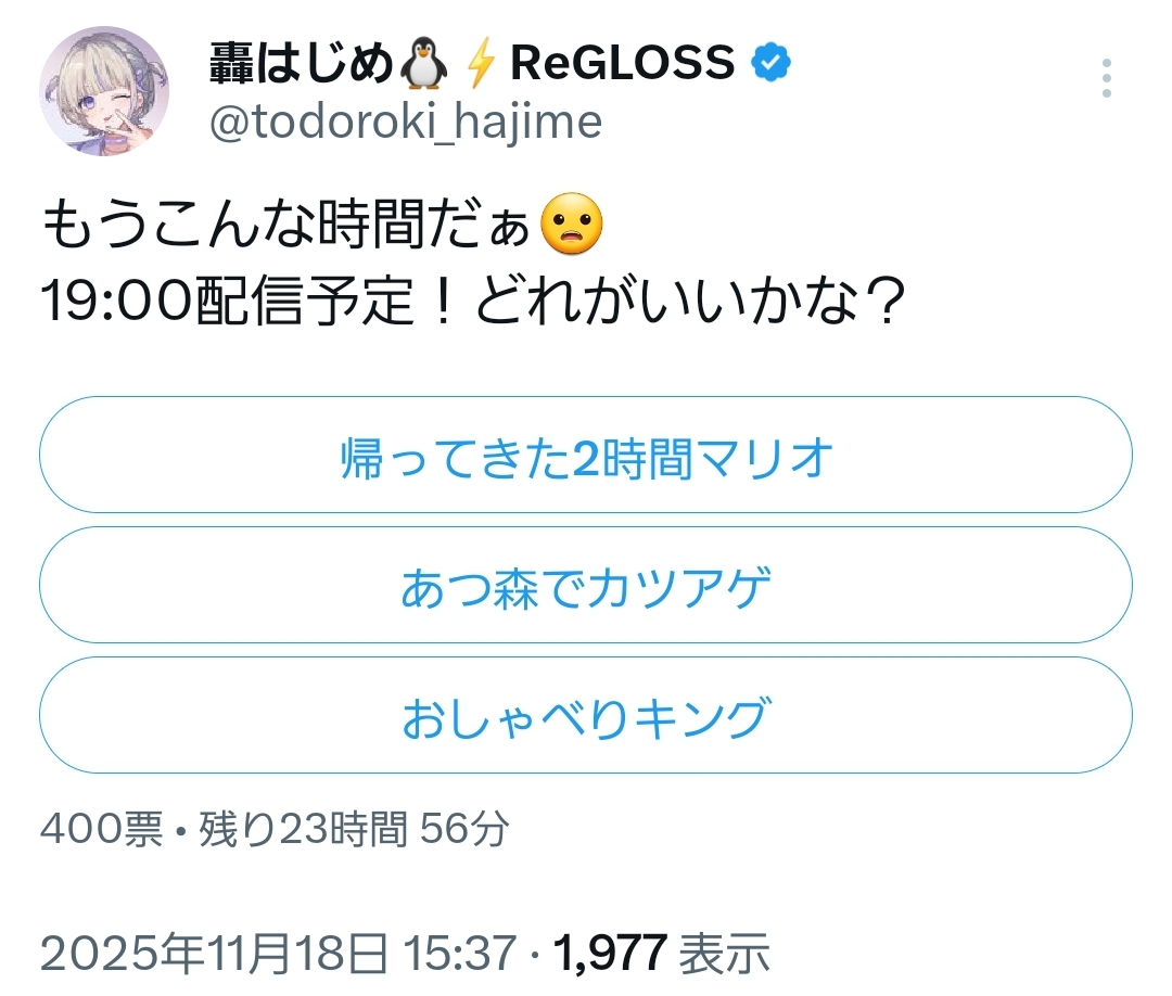 | … | 991無題Name名無し 25/11/18(火)20:27:47No.10916862+今年のみこち何してたっけなあと思ってライブ一覧見るとまず配信枠数に驚くんだよね |