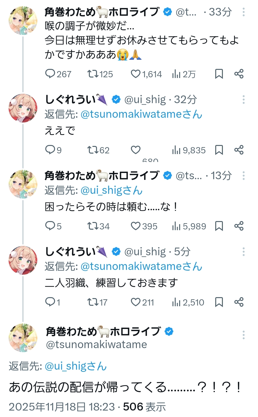 | … | 50無題Name名無し 25/11/18(火)13:21:51No.10915765+>今昼ホロアーカイブ追っかけながら爆速の実況ログに震えている |
