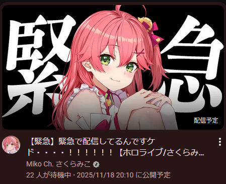 | … | 992無題Name名無し 25/11/18(火)20:27:53No.10916863そうだねx1 1763465273916.jpg-(79182 B) 2025年のさくらみこチャンネルの顔 |