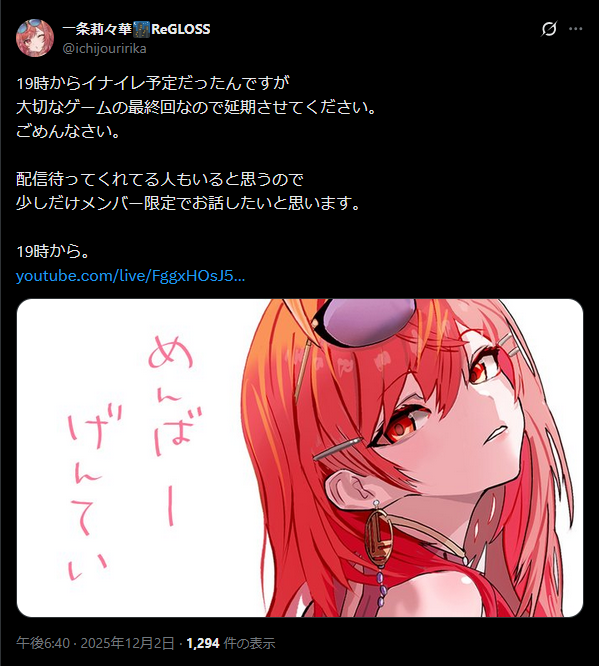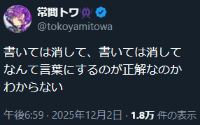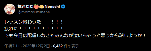 | … | 6無題Name名無し 25/12/02(火)18:34:27 ID:0EYa4xbcNo.11034226そうだねx1>一旦この配信は何配信なの…? |
