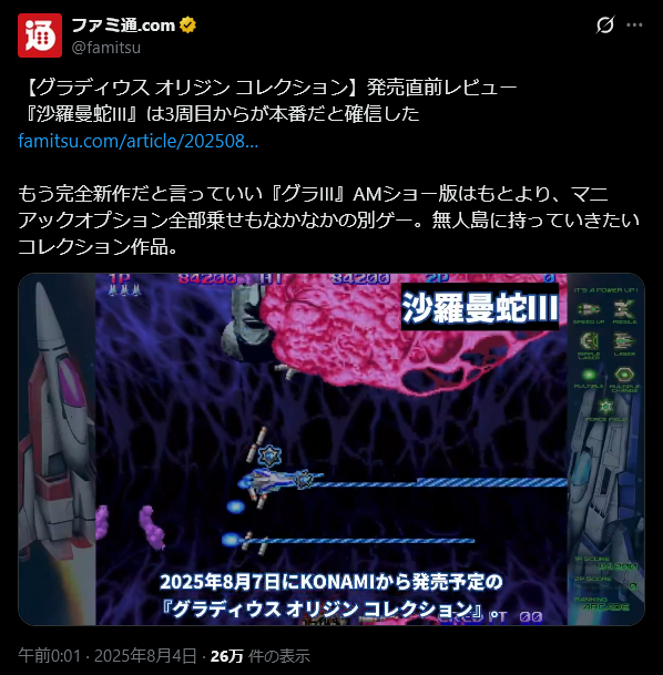 | … | 959無題Name名無し 25/12/02(火)19:16:58 ID:BAp2741ENo.11035358+グラディウスってもしかして色んなゲームに内蔵してるのか? |