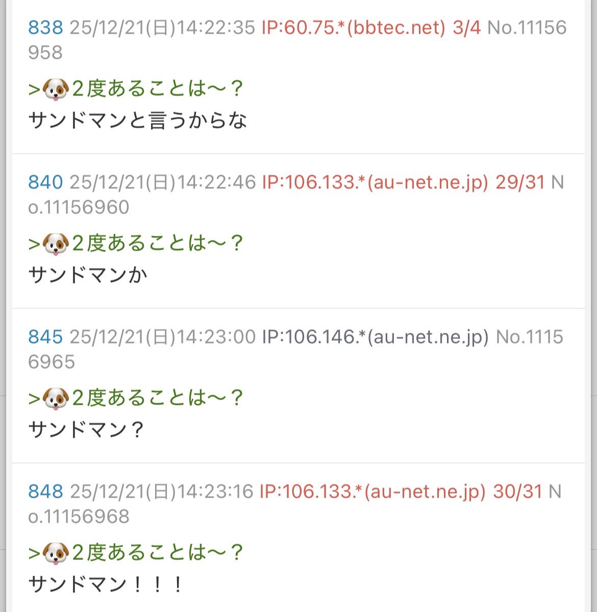 | … | 25無題Name名無し 25/12/21(日)13:25:13 IP:218.131.*(bbtec.net)No.11156136+🐶イヤー |