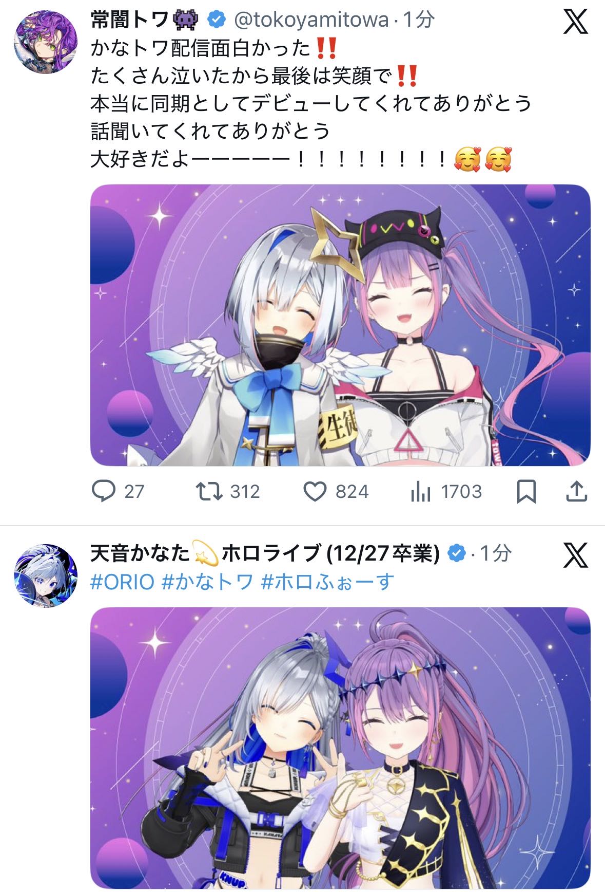 | … | 24無題Name名無し 25/12/22(月)20:00:42 IP:60.87.*(ipv4)No.11166080そうだねx2多分トワ様が泣いたらたそも泣いてたと思う |
