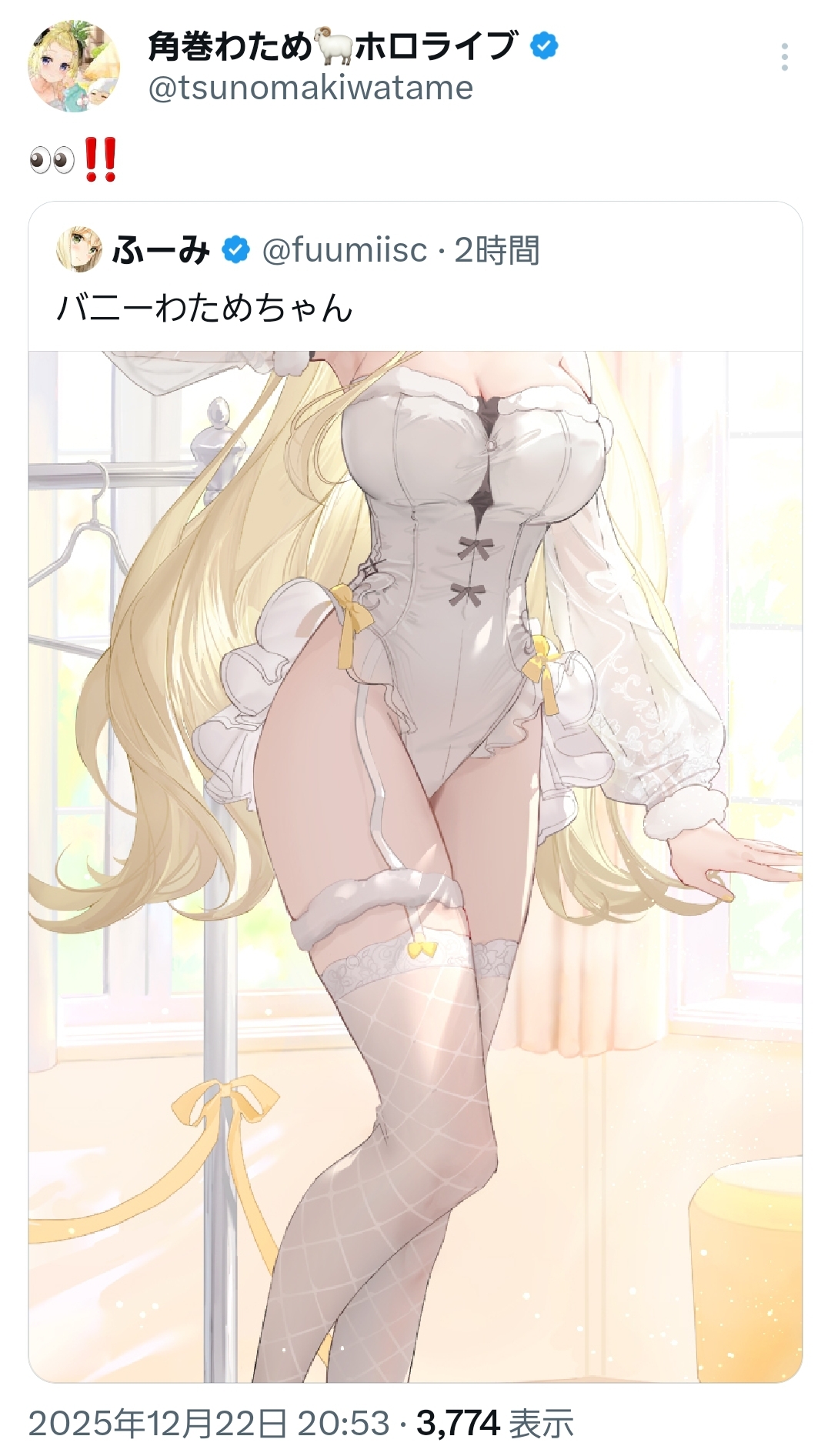 | … | 940無題Name名無し 25/12/22(月)20:55:06 IP:60.98.*(bbtec.net)No.11167018+ホロライブで一番清楚…?戦争があじまる… |