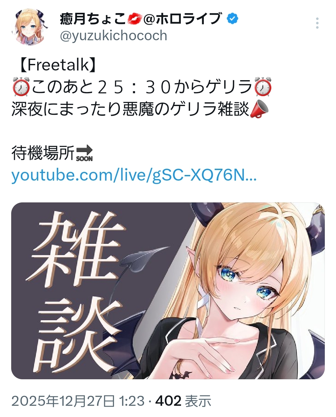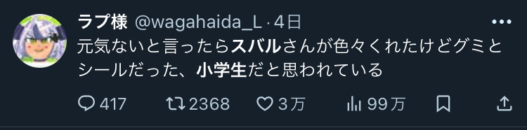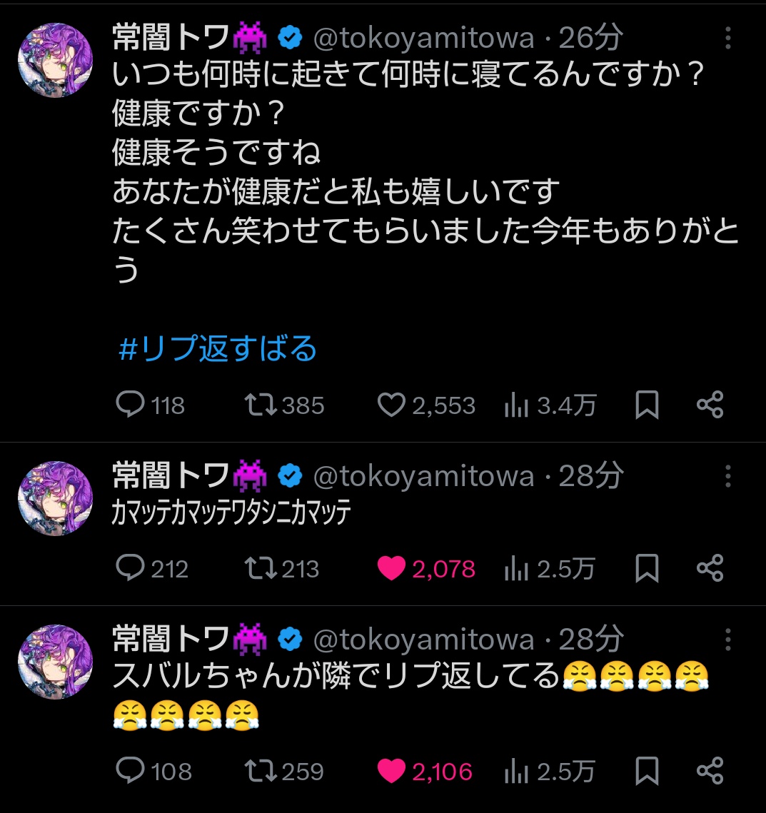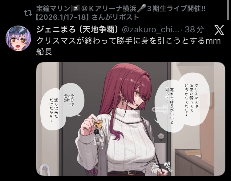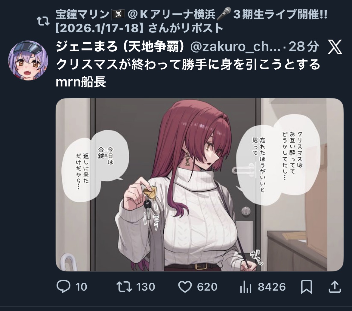 | … | 24無題Name名無し 25/12/26(金)23:39:18 IP:118.104.*(commufa.jp)No.11202690+毎年年末年始に喉の調子が悪い大空スバル |