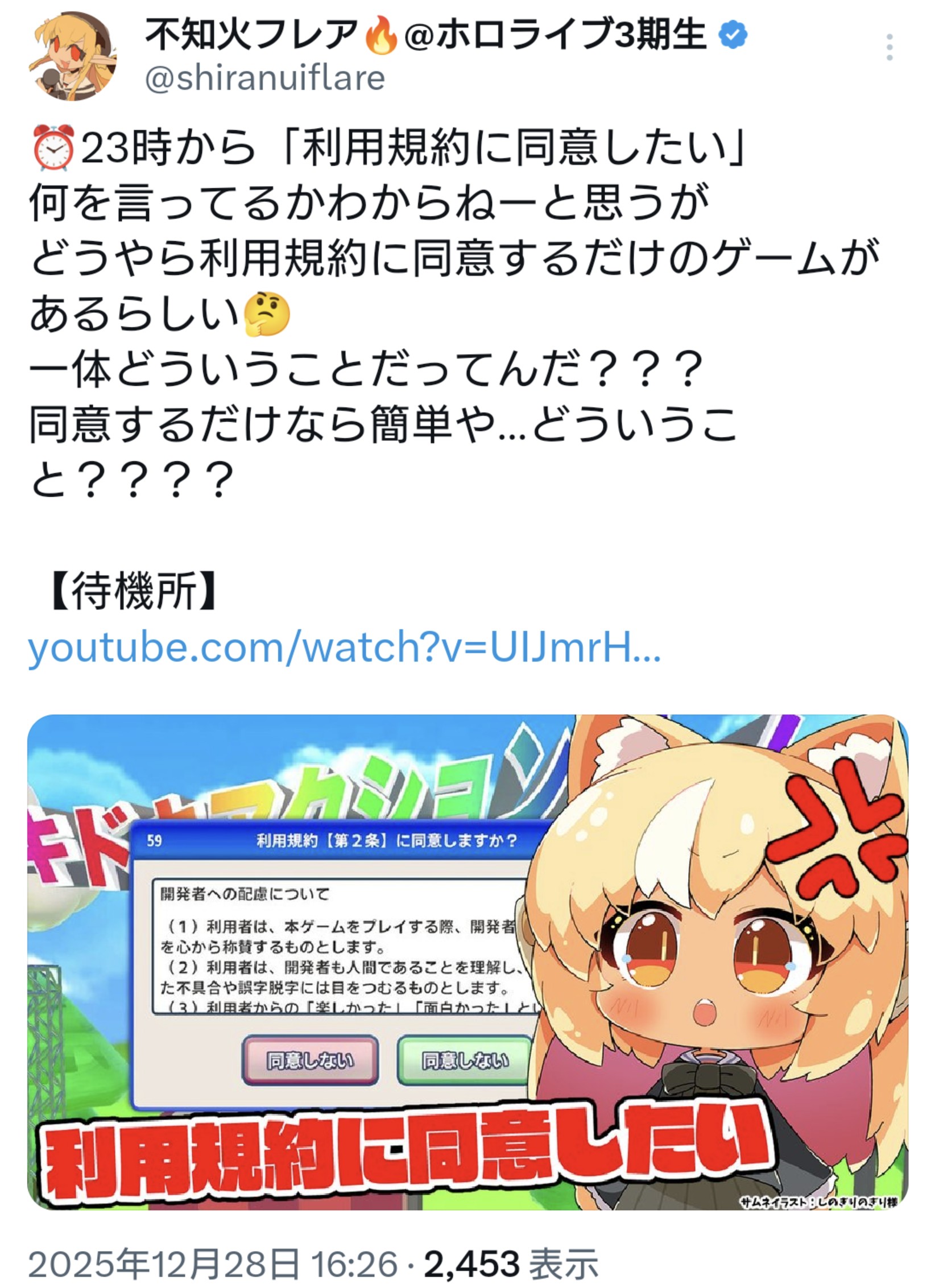 | … | 36無題Name名無し 25/12/28(日)16:04:52 IP:211.124.*(zaq.ne.jp)No.11214407+そらちゃんが思ってた以上に利用規約にはまってる |
