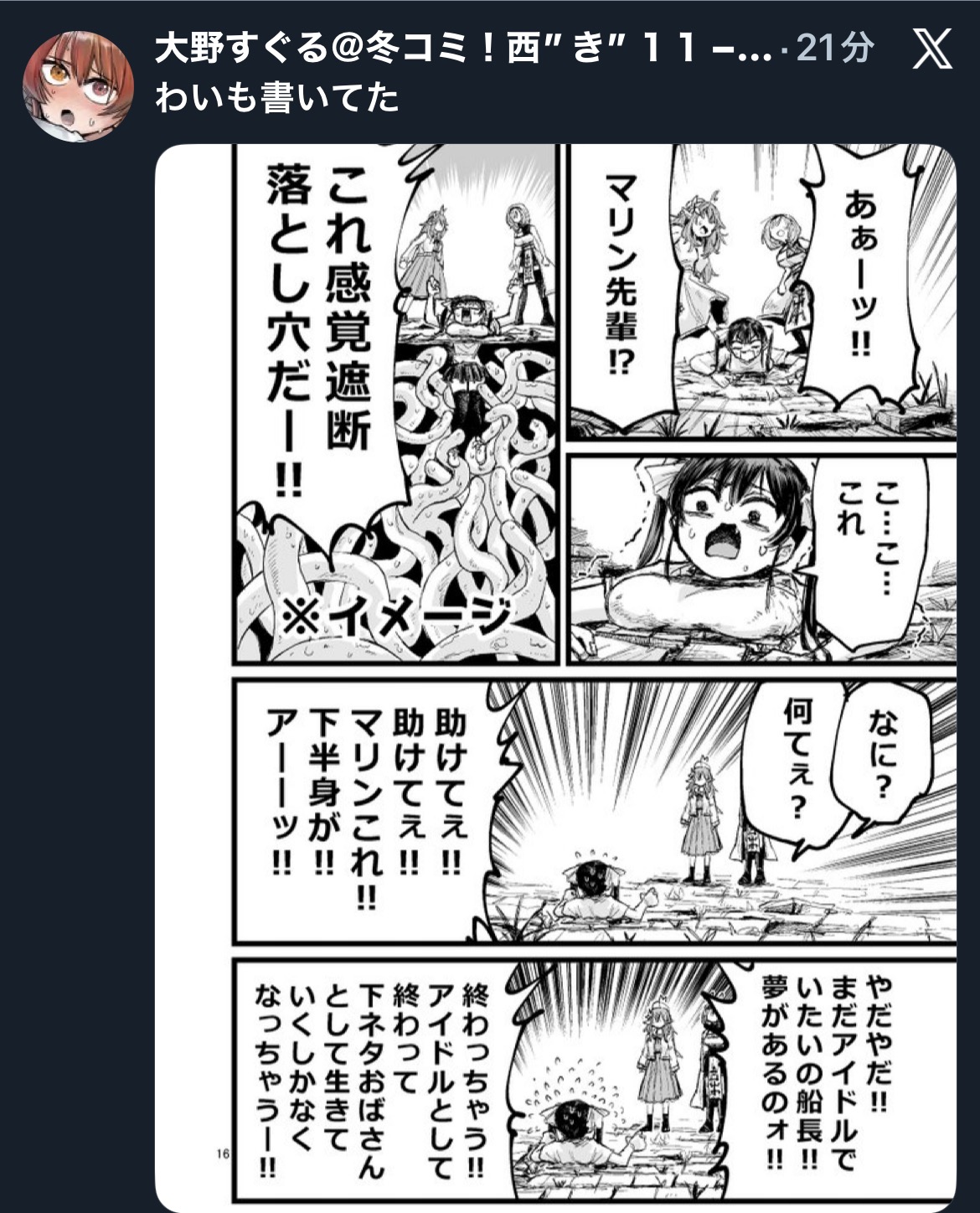 | … | 23無題Name名無し 25/12/28(日)21:49:01 IP:153.239.*(ocn.ne.jp)No.11221545+ホロメンの汗を飲めるやつがおるか? |