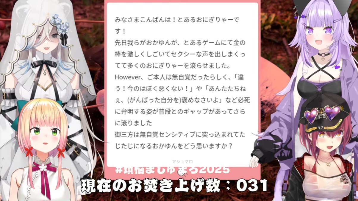 | … | 26無題Name名無し 25/12/29(月)21:02:09 IP:126.35.*(panda-world.ne.jp)No.11237076+おかゆんが優しい声で邪悪なマロを読み上げておられる… |