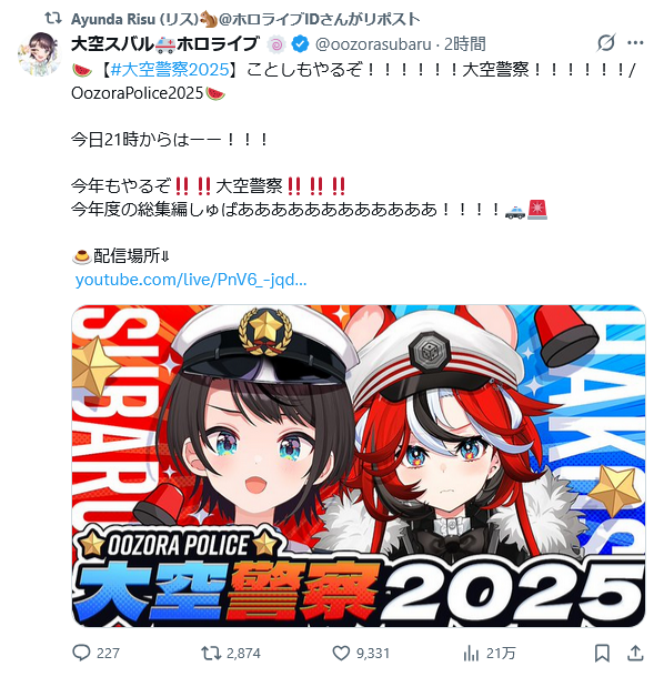 | … | 29無題Name名無し 25/12/29(月)21:02:10 IP:153.173.*(ocn.ne.jp)No.11237079+さて今年も大空警察の時間だ |